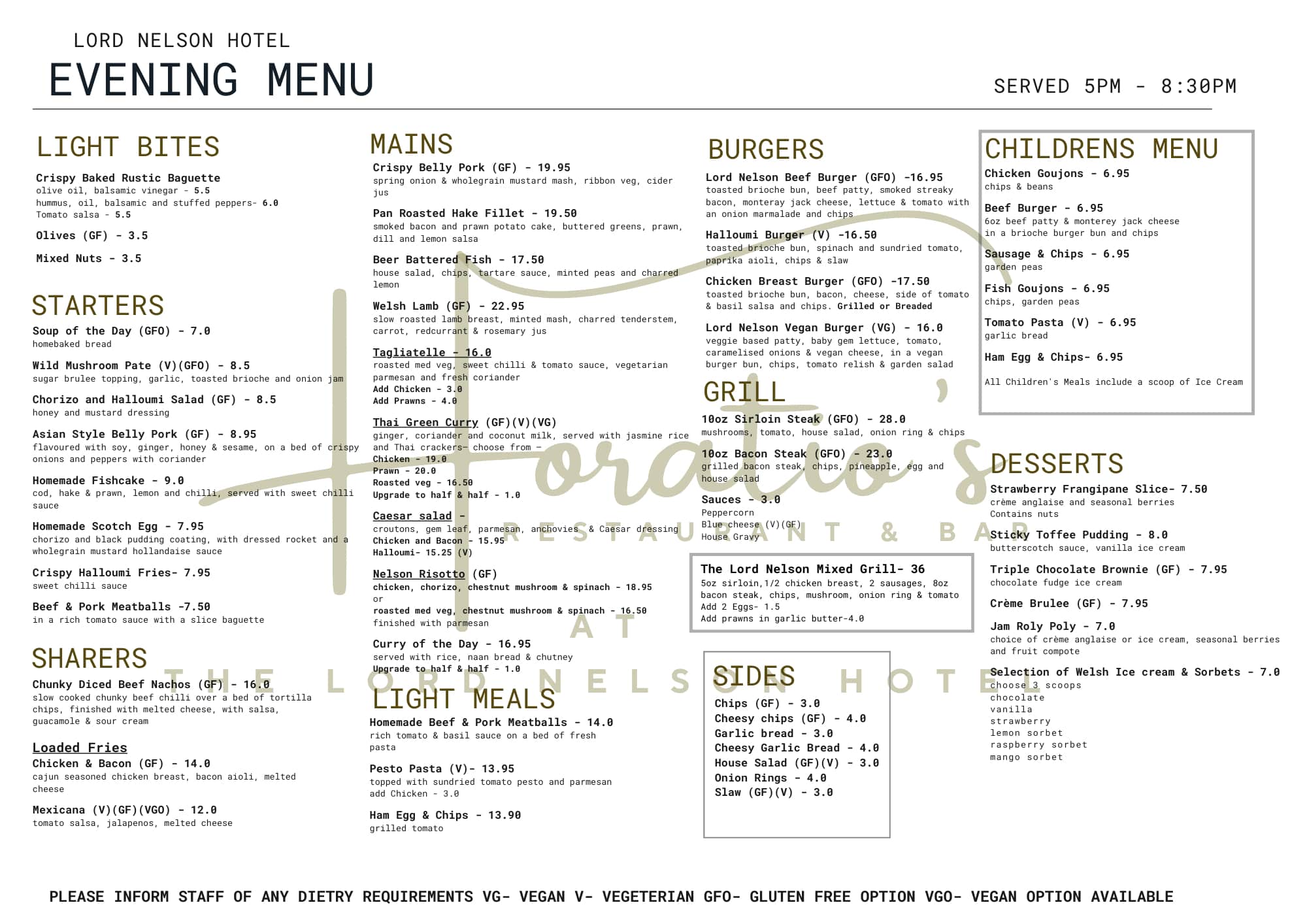 A booking has been made at The Lord Nelson in the centre of Milford (9 Hamilton Terrace) for 6 45pm, Saturday evening meal.