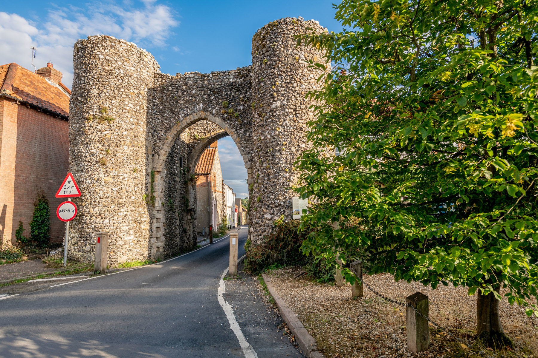 A circular walk based on the historic Norfolk village of Castle Acre with its ruined Cluniac priory and Norman castle. The route leaves Castle Acre along a narrow lane that fords the river Nar, giving a distant view back towards the priory ruins. Then along a short section of a quite country road before turning off on a farm drove to climb to a ridge of hills (these are gentle, Norfolk hills) that form the southern boundary to the Nar valley. A walk along the ridge will provide distant views before descending once more to the river Nar which is crossed on another ford to join a section of the Nar Valley Way across Castle Acre Common before re-entering the village.