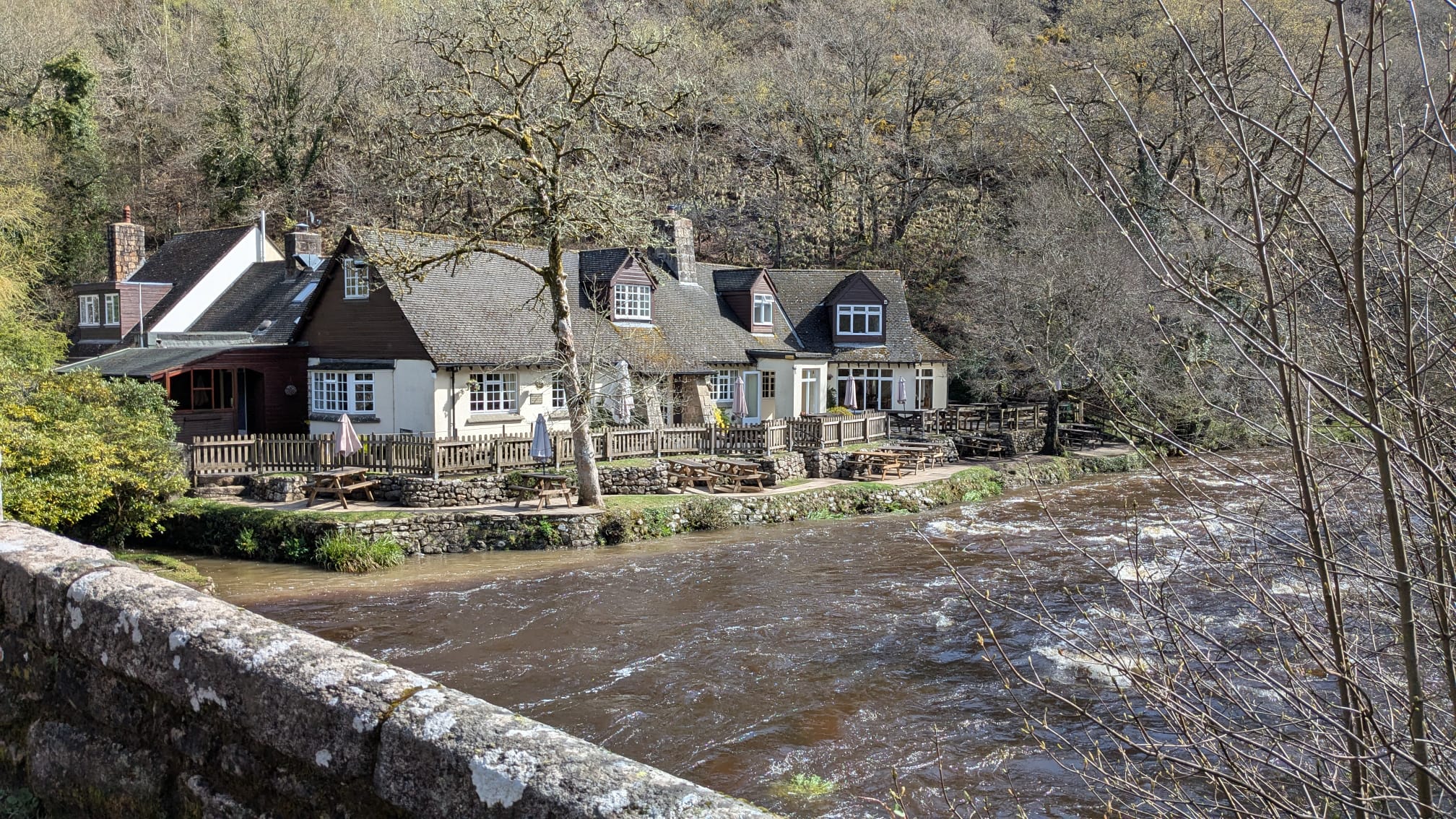 We will organise some cars to be at Step's Bridge so we can drive back to Fingle Bridge where the Inn provides coffee and cakes (or beer) beside the river.