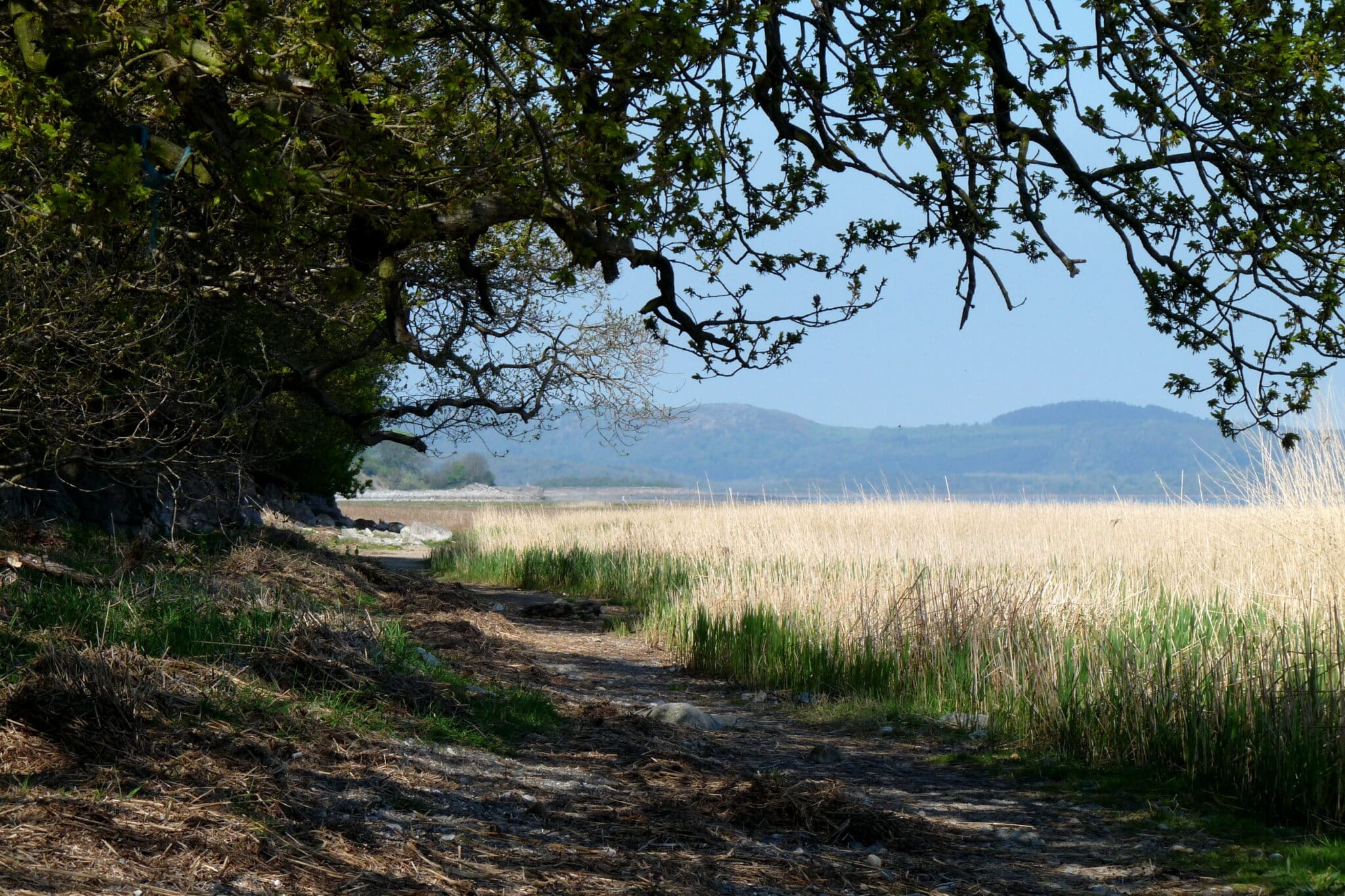 A varied walk on the eastern side of the Furness Peninsula, through woods, on commonland, and through fields, lanes, and double-hedged footpaths, and along the coast.  The "baby" stone circle on Birkrigg Common is beautiful and interesting, as is the church in Great Urswick; the village itself situated around the northern and western circumference of its central tarn. The coastal section of the walk also passes through the hamlet of Aldingham, with its pretty coastal 12th century church.