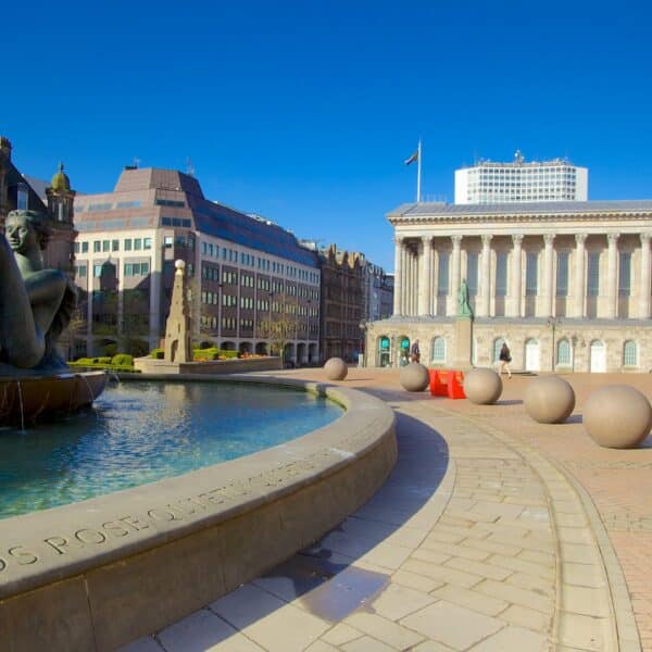 Explore surprisingly green Birmingham on a captivating 9-mile walk that begins at St. Philip’s Cathedral, a Georgian gem just a two-minute walk from New Street Station.