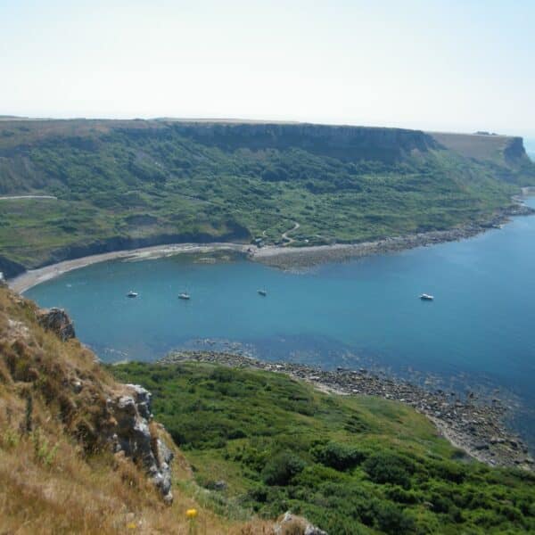 A moderate 5 mile coastal walk with some undulations exploring the ancient chapel and caves of St Aldhelms Head