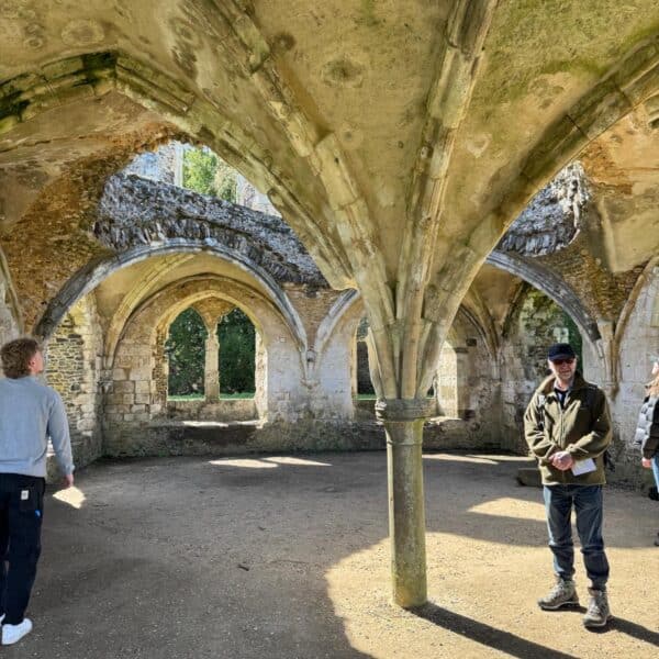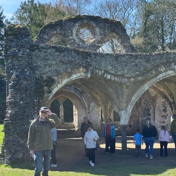 Circular varied walk through open landscape and woodland. We will be stopping for an extended coffee break at Waverley Abbey ruins - the first Cistercian monastery in Britain, where there are cafe facilities. We will then stop by Mother Ludlam’s Cave. Lunch stop will be at the scenic viewpoint at the top of Crooksbury Hill. Plenty of eye-watering houses en route.