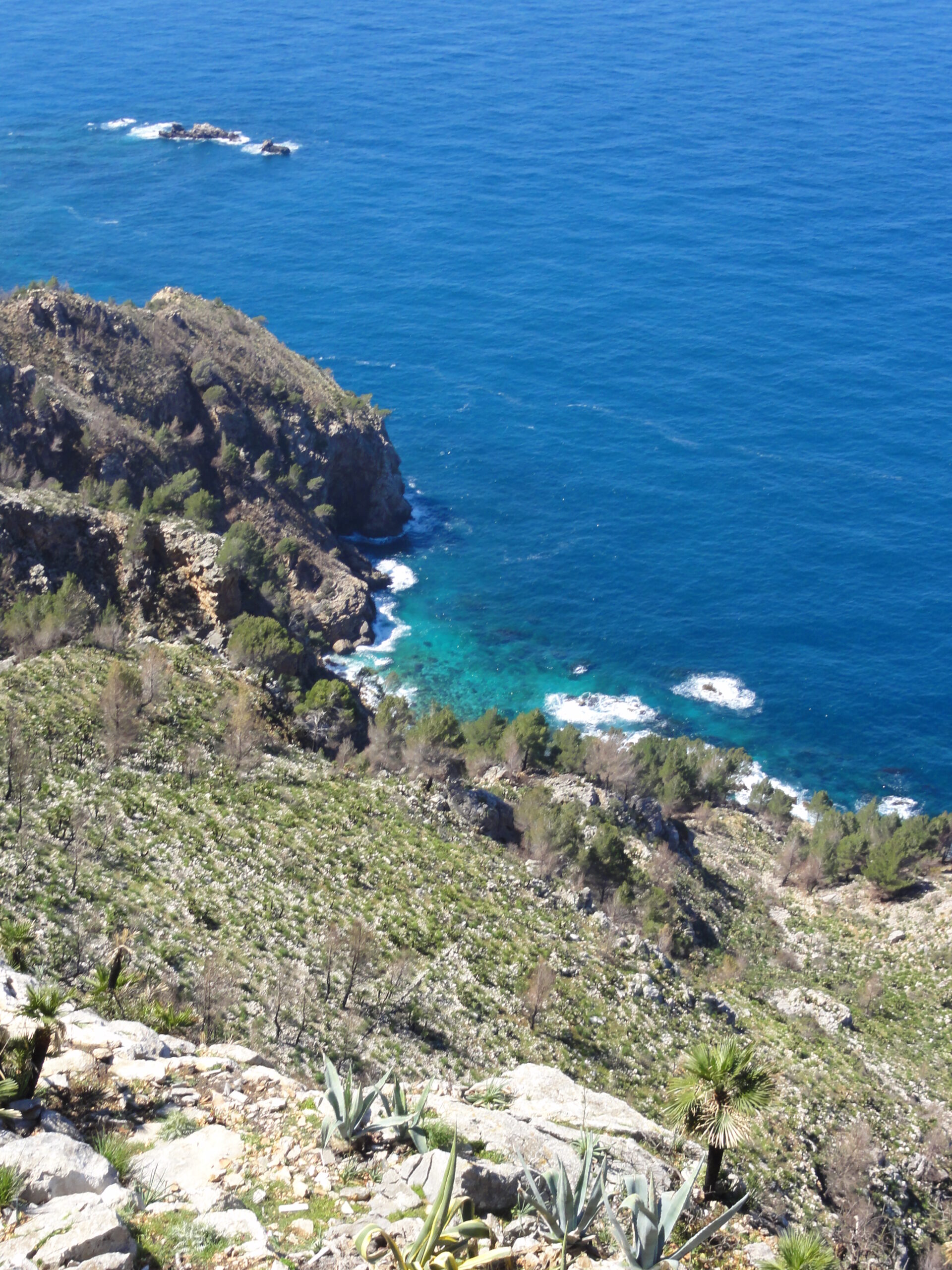 Mallorca is a Spanish island in the Mediterranean, offering everything a cyclist or walker may wish for. We have been cycling there for many years; walking is more recent. There are beaches along the south coast, a central plateau with isolated hills bearing castles and monasteries to visit, and mountains plunging into the sea along the north coast. The mountains are green all year and in Spring there are flowers everywhere across the island. In autumn many places are still green and the sea is warmer, but there are not so many flowers.