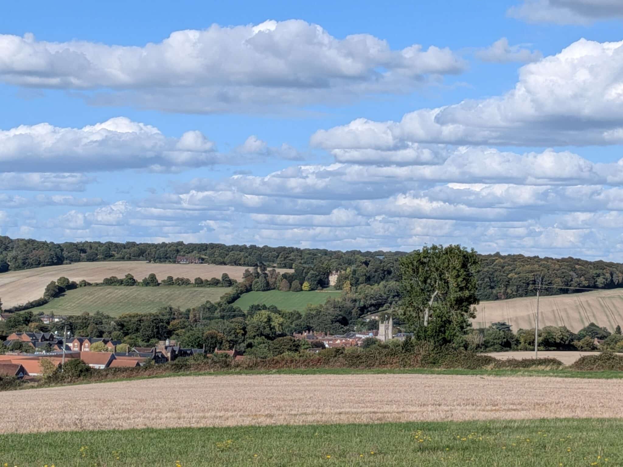 This is a 10 mile walk around parts of the Chiltern Heritage Trail. We start in Old Amersham and follow roughly the course of the River Misbourne to Little Missenden. Then we head uphill towards Holmers Green, then Penn Street, Winchcombe Hill and Coleshill before descending to the starting point. This is the all within the Chilterns National Landscape and is a typical mixture of open farmland and woodland, with picturesque villages, cricket grounds and ancient churches.