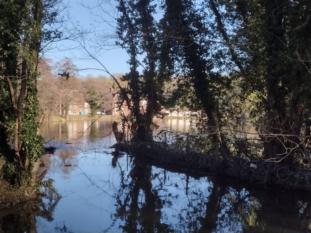 After several further undulations we enter Lullingstone Country Park, an attractive landscape of chalk grassland and ancient woodland with an internationally important collection of veteran trees. We have a brief view of the impressive Eynsford railway viaduct. Joining the Darent valley, we pass Lullingstone Castle, a historic manor house which can be visited (but with limited opening hours). Its grounds contain an unusual parish church (freely open to the public at all times) and a World Garden with plants from around the globe. However anyone visiting these attractions would need to leave the walk at that point! We have a view of its lake (a dammed section of the river) a bit further on. The route back to Shoreham village is along the Darent Valley Path which passes extensive lavender fields at Castle Farm.
