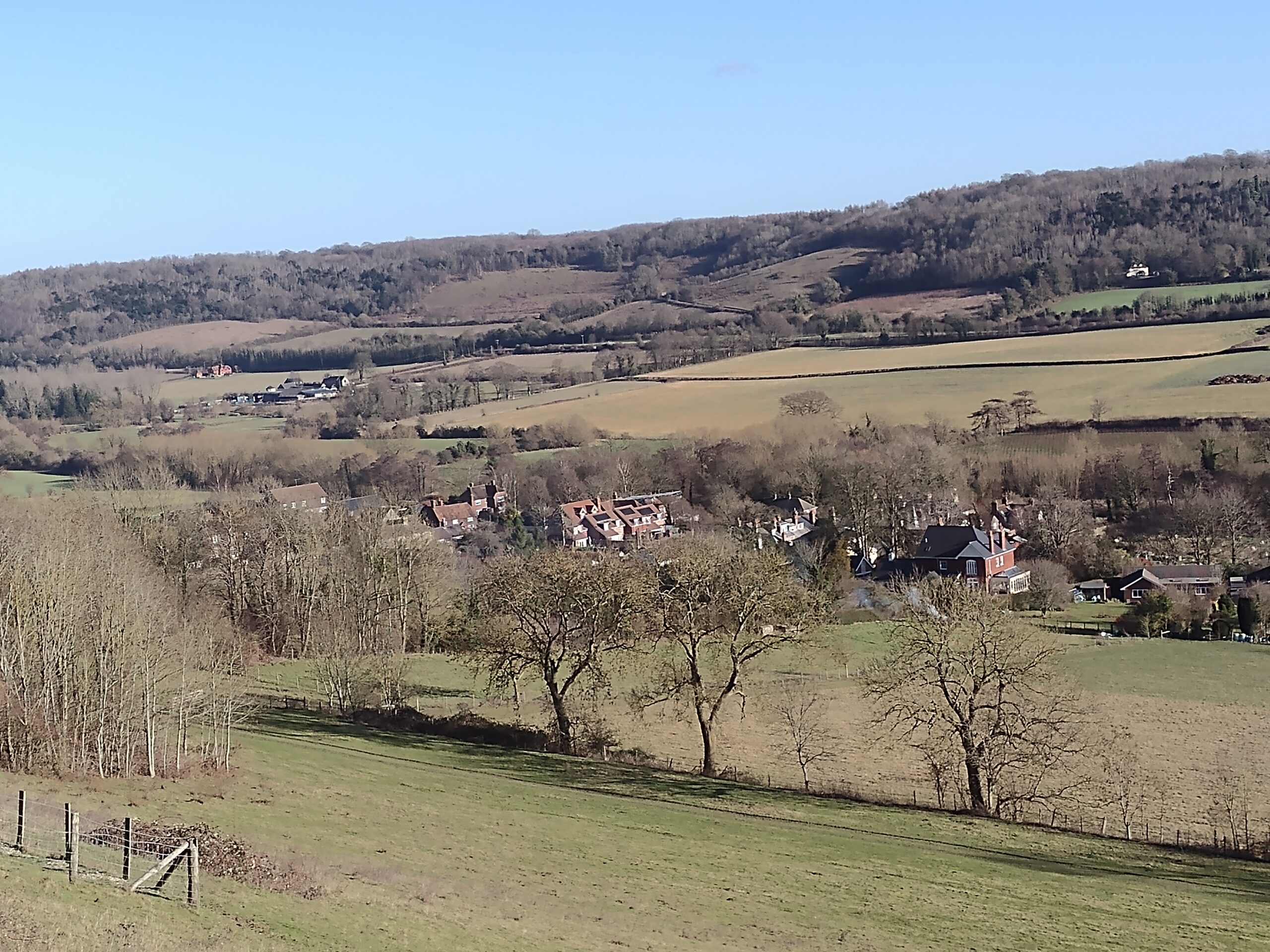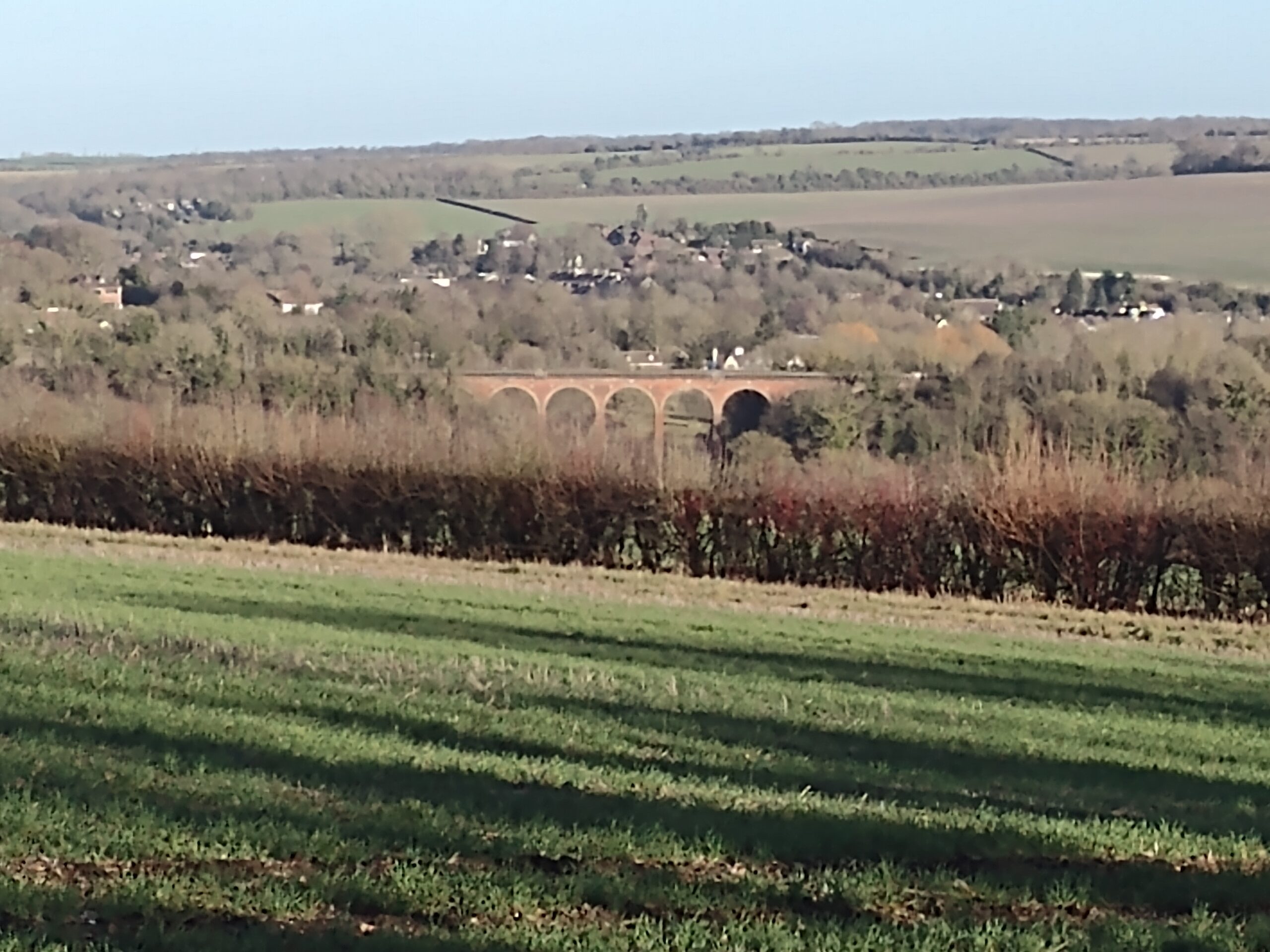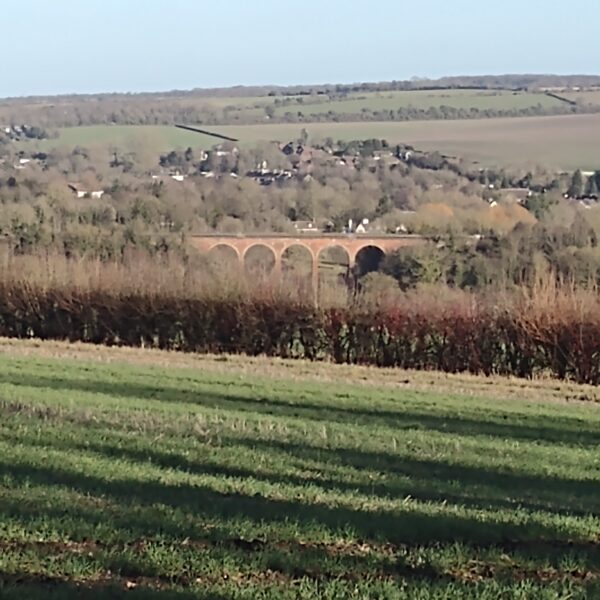 After leaving Shoreham station it is a short walk to St Peter and Paul parish church, with a notable 15th century porch, where we will have a brief stop. After passing through Shoreham village we climb steeply to the western escarpment and Shoreham Cross. Here we can have a breather and admire the views across the Darent valley to the east. The Shoreham Memorial Cross, over 100 feet long, is a striking feature on the hillside above Shoreham Village and is visible from afar. It was carved into the chalky hillside in 1920 as a memorial to the local men killed during World War One.
