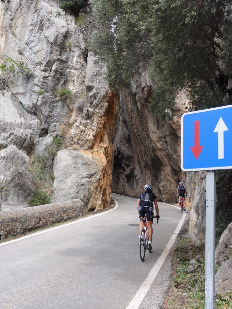 Mallorca is a Spanish island in the Mediterranean, offering everything a cyclist or walker may wish for. We have been cycling there for many years; walking is more recent. There are beaches along the south coast, a central plateau with isolated hills bearing castles and monasteries to visit, and mountains plunging into the sea along the north coast. The mountains are green all year and in Spring there are flowers everywhere across the island. In Autumn many places are still green and the sea is warmer, but there are not so many flowers.
