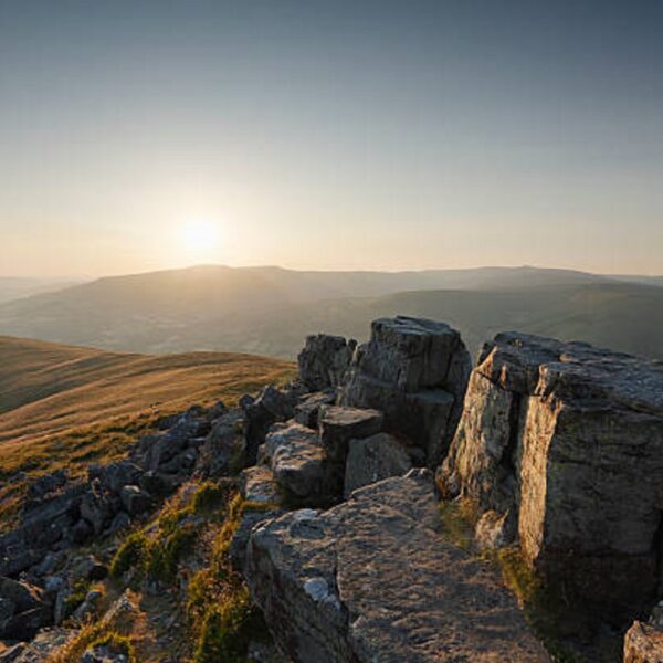 The car park is quite a way up the hill, saving most of the climb up. The scenery is open moorland with extensive views (on a good weather day), and the terrain is tracks and good paths that may be muddy in places.