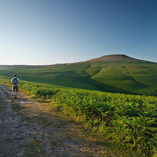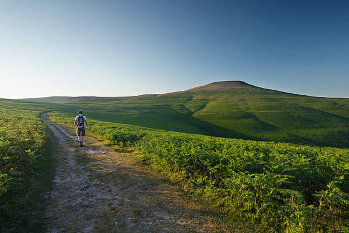 A moderate walk of about six miles, to the peak of Sugar Loaf - the hill that dominates the Abergavenny skyline - from the National Trust car park on the hill. Day four of the All Wales Weekend.