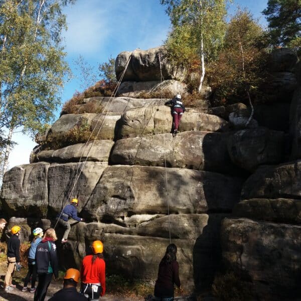 Harrisons' Rocks are a series of sandstone crags. The site is a notable example of a periglacial tor landform developed in rocks of the Ardingly Sandstone Member of the Tunbridge Wells Sand Formation. It is popular with rock climbers and is the largest of the cluster of local outcrops known by climbers as Southern Sandstone.