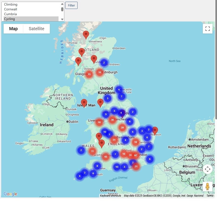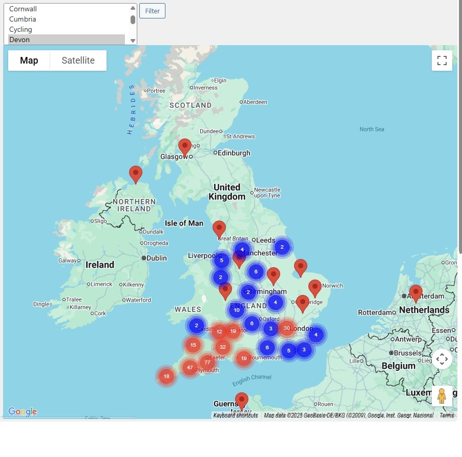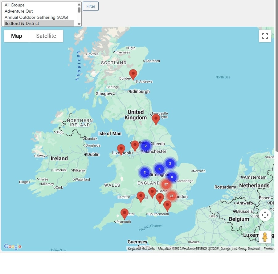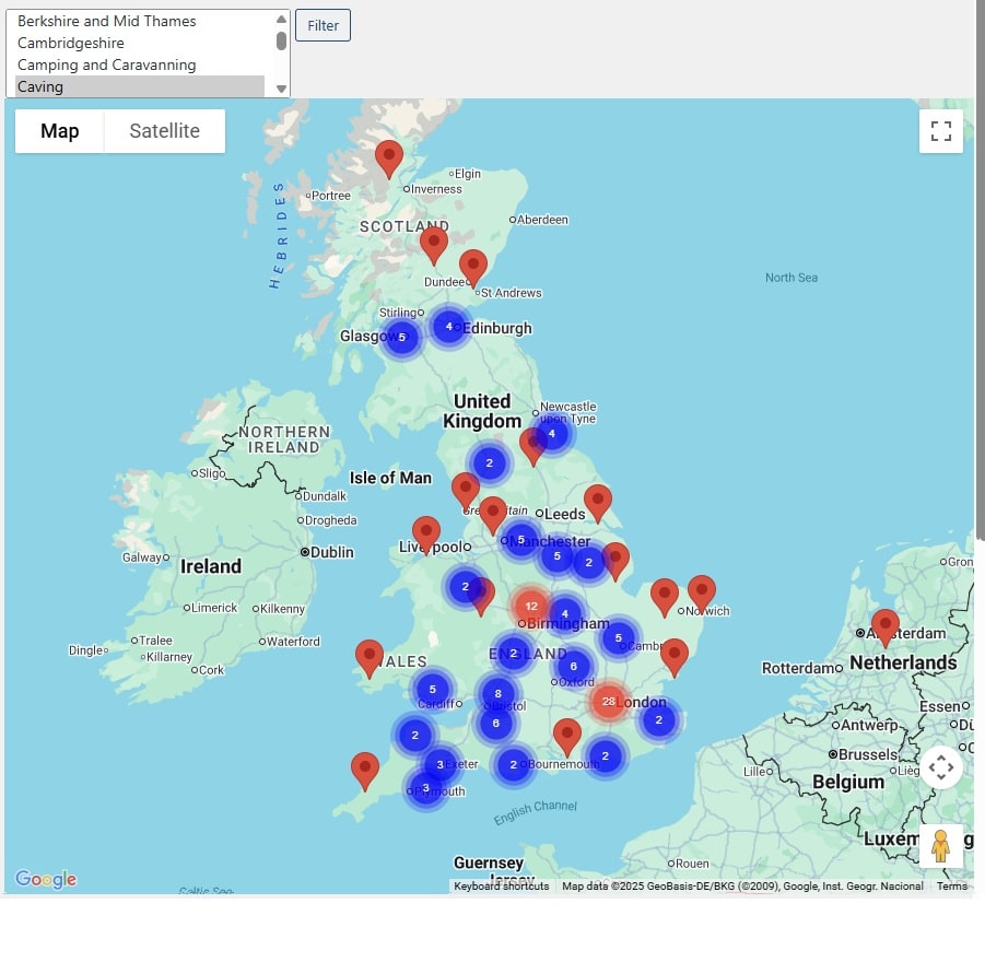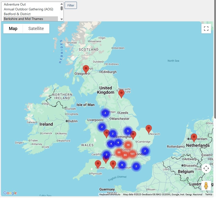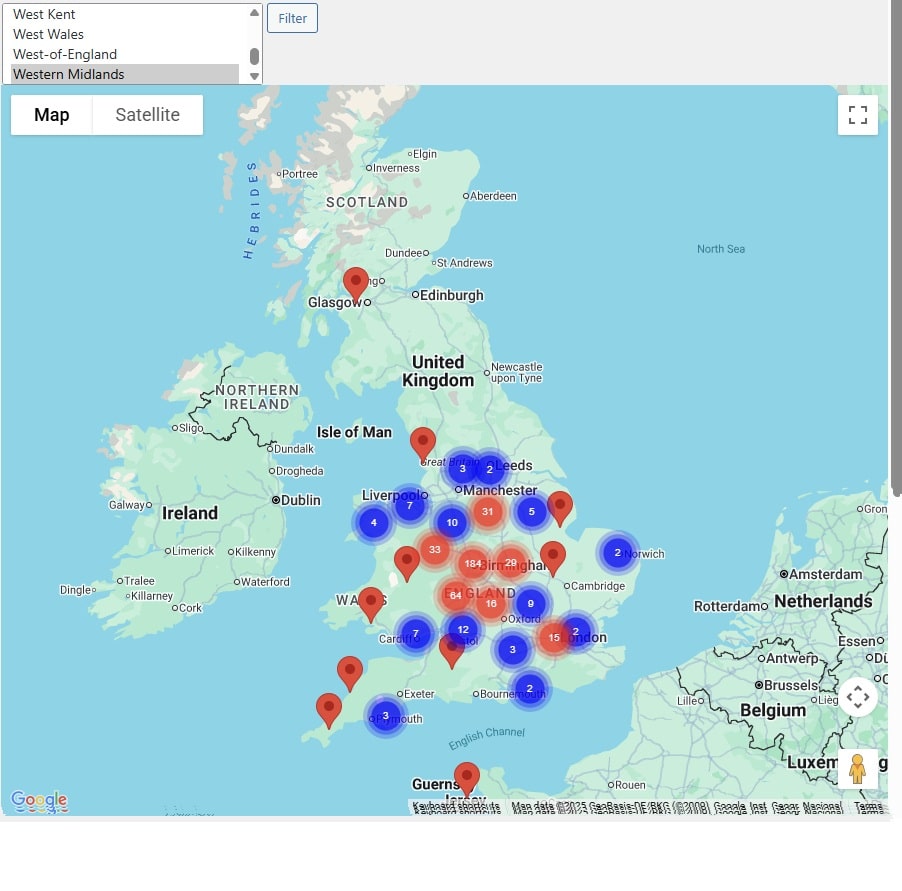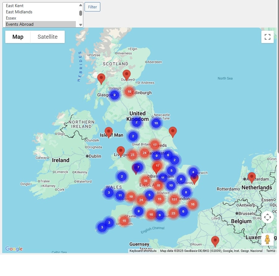 The first set shows where all all club members are located, by region. The second set shows where members of each specialist group are located, and the third shows members of each local group.