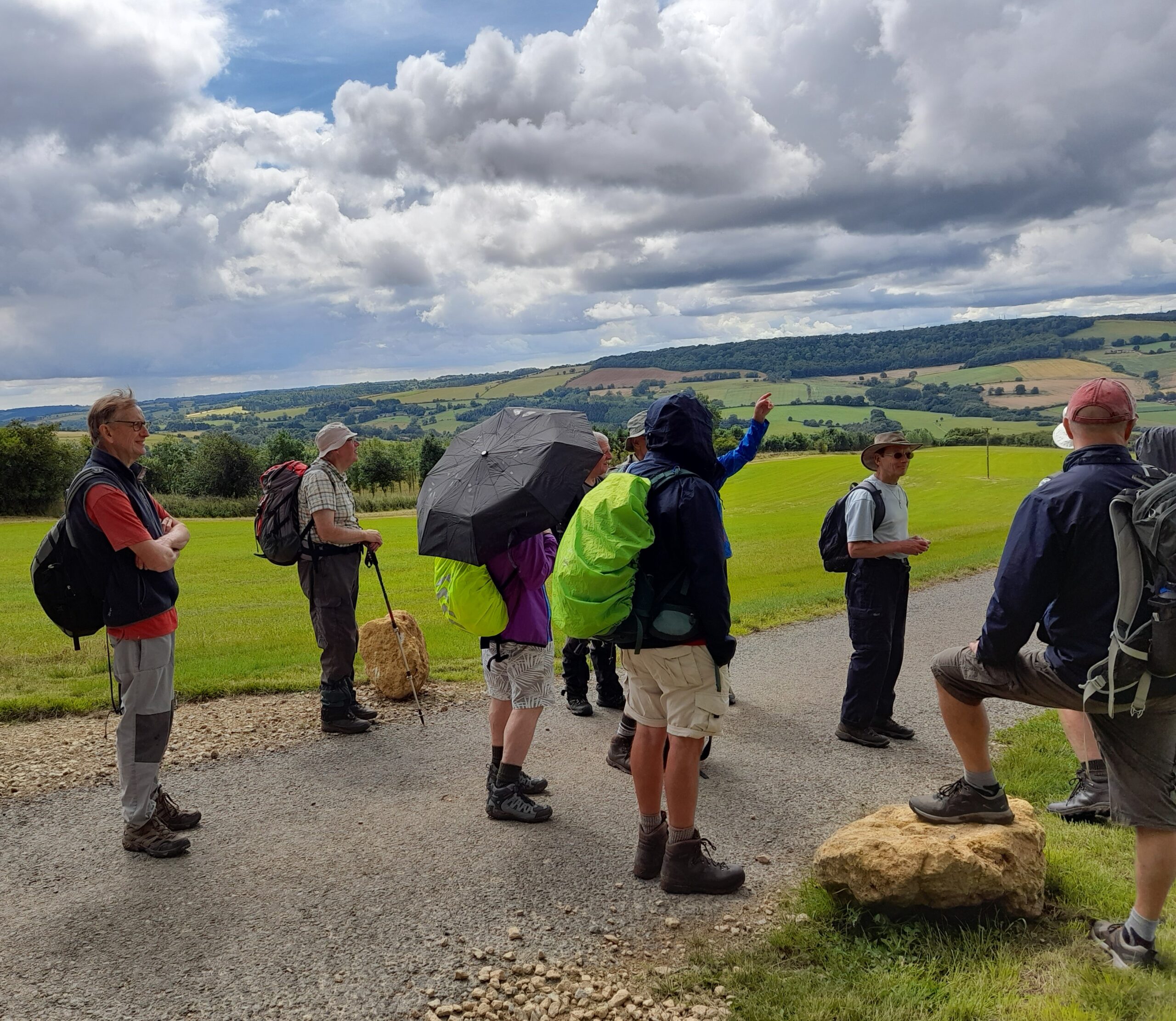 Rain persisted on Sunday, but it gave chance for those who were unable take part on Saturday with repeats of the walks around RSPB Otmoor in Beckley; Stanton, Stanway and Snowshill. Additional walks included Great Tew in North Oxfordshire; in and around Broadway, Worcestershire with ascent up to the tower; a leisurely stroll around Batsford Arboretum; a moderate walk Stow-on-the-Wold, taking in Wyke Rissington, Bourton-on-the-Water and Lower Slaughter; another chance to visit Rollright Stone but shorter version from Little Compton; from Blockley including up and the valley, and visit to Father Brown’s parish; Temple Guiting; Sherbourne and the Windrush Valley; from Sibford Gower to neighbouring villages of Burdrop, Epwell, Swalcliffe and Sibford Ferris. For those cycling it was a 40-mile trip taking in the towns and villages west of Morton-in-Marsh such as Chipping Campden. Sunday evening was quiz night, questions set by Paul Ashcroft with Derek as MC for the evening, with proceeds going to the Fire Fighters Charity.