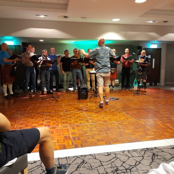 On Saturday night the campus’s Stirling Court Hotel was venue to the AGM and RAP session and then the evening meal. This was followed by Edinburgh Gay Men’s Chorus and then ceilidh with the legendary accordionist, Sandy Brechin.
