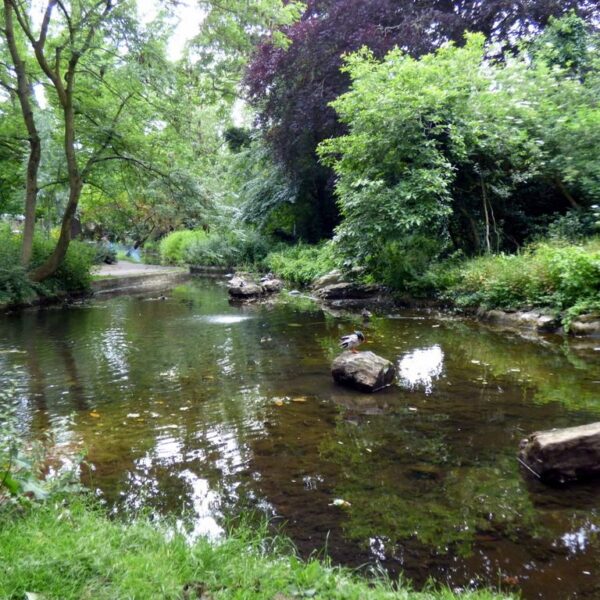 - the plush, serene greenery of Canonbury Grove, alongside the New River.