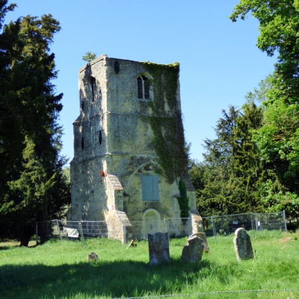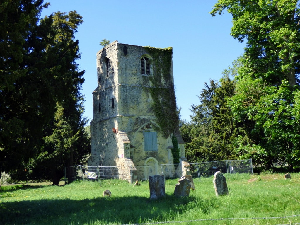 - the remaining tower of Thundridge Old Church, St Mary & All Saints, is itself a grade II* listed building and forms part of a scheduled monument, which includes its neighbouring moat. The remnants are the western tower, originating from C15. The rest of the church was demolished in 1853. This site is complementary to our walk of 14Sep2024 (Four Flavours of Herts).