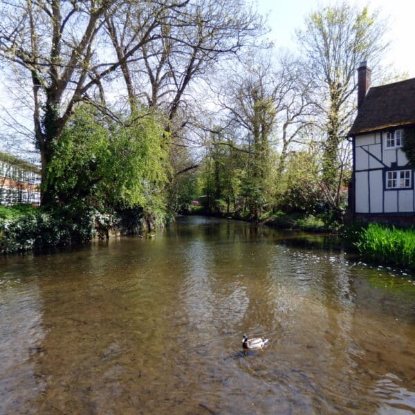 - lunch was on benches on the bridge over the River Lea at Wheathampstead.