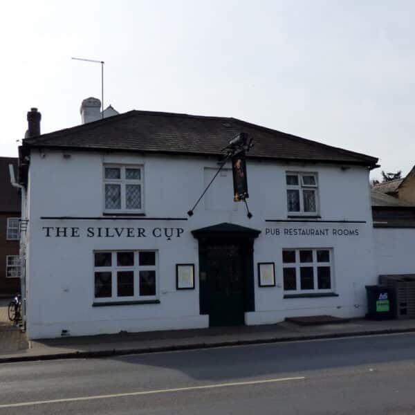 8 members joined the optional pub stop at the end of the walk at the The Silver Cup (OSM), Harpenden, a Wells Pub.