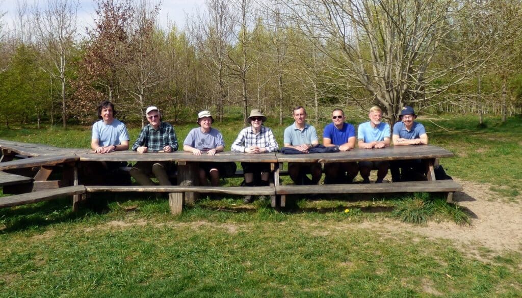 - In the middle of Heartwood Forest is the so-called “Magical Wood”. Originally sponsored by Disney, the wood was laid out as a partial cross, at the centre of which is a series of small, low picnic benches, made primarily for children, presumably to re-create the Mad Hatter’s Tea Party. This is where we took our group shot. Although we look more like some sort of interview panel than a mad hatter’s tea party.