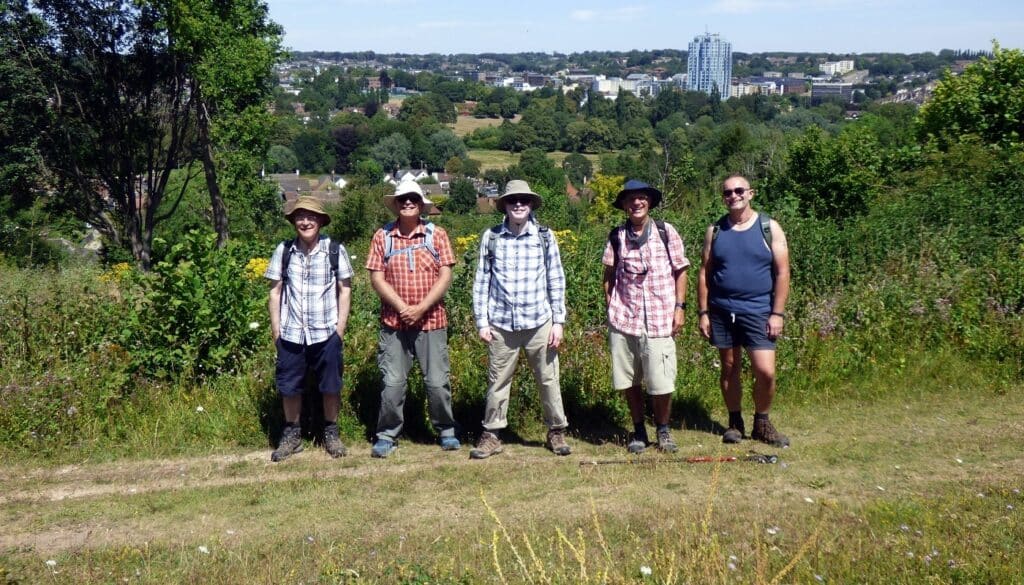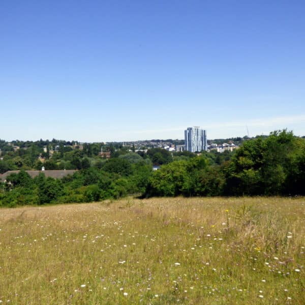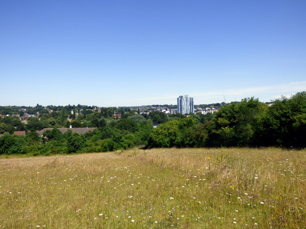 - The route took us across Roughdown Common, part of the Box Moor Trust Estate, is a chalk hill which dominates the south side of Hemel Hempstead and is one of Hertfordshire’s few remaining examples of unimproved chalk grassland. It was designated as an SSSI in 1953 for the number of plant speices found on the terrain. The citation notes that the land is grazed by sheep to maintain it; today, we saw little evidence of sheep, and the grasses were notably taller than one would have expected of sheep-grazed.