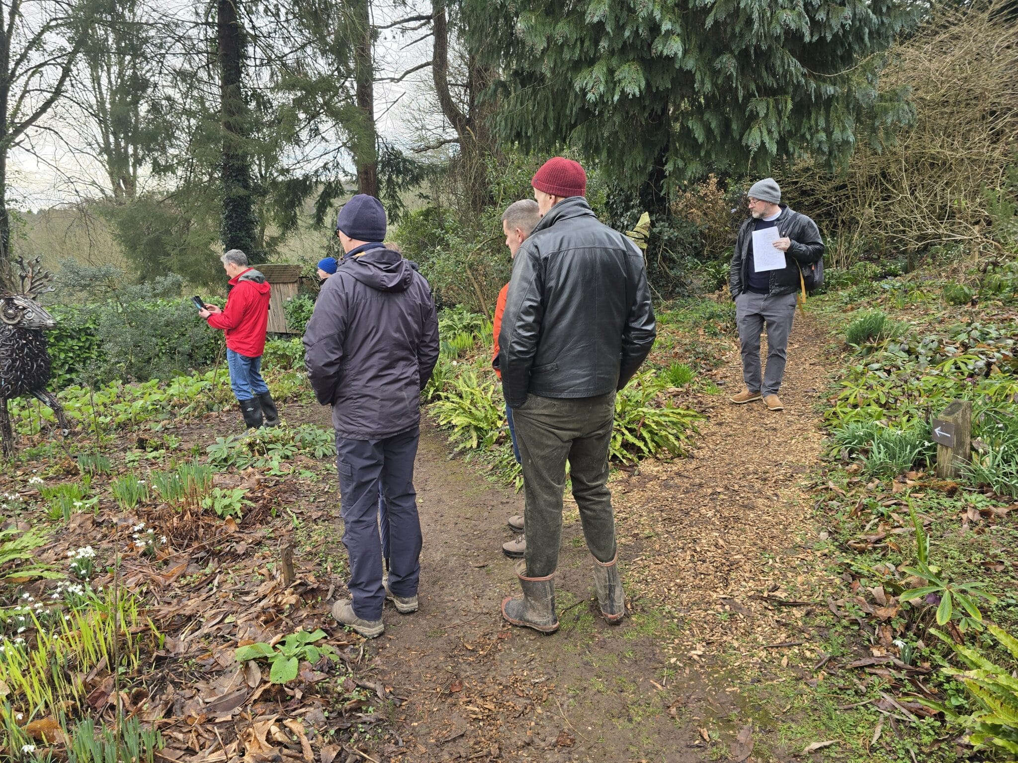 We visited a sculpture garden in the Wye Valley with a renowned collection of snowdrops, that have been built up over 50 years. As we greeted each other, it was nice to give a warm welcome to one new member on his first outing, and another attending his second event. After a short chat about snowdrops, we followed the meandering paths around the garden, admiring the vast swathes of white flowers and also other plants in bloom, including hellebores, cyclamen and early daffodils. The sweet smell of the evergreen shrub Sarcococca hookeriana also tickled our nostrils. Chat flowed easily as we talked about what we were looking at.