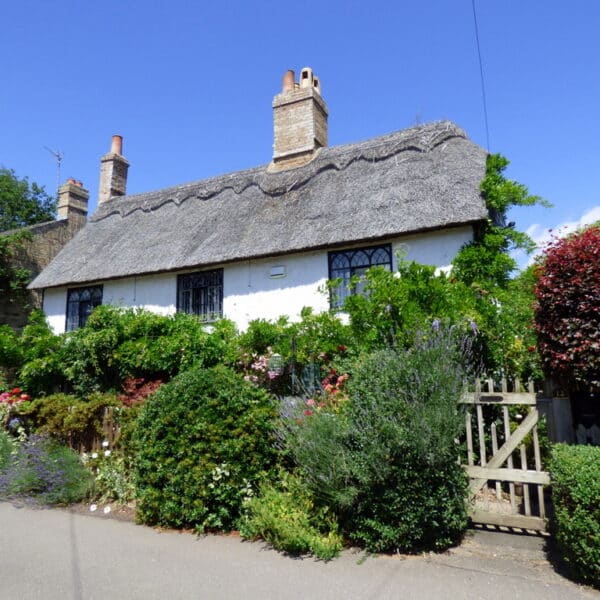 - Hemingford Abbots just happened to have its regular flower festival taking place on the day. The festival takes place every two years, so the next festival will be on 26-27Jun2027. The festival enables ticket-holders to visit numerous private gardens in the village, some of which provide teas & coffees. The church is flowered-up and, this year, we saw the remnants of Morris dancing, complete with a man dressed up as a chicken. The village centre is full of thatched-roof buildings, including one building which looked like it might once have been the village school. The flower festival is popular: a water meadow next to the village becomes a make-shift car park, which looked more than half-full.
