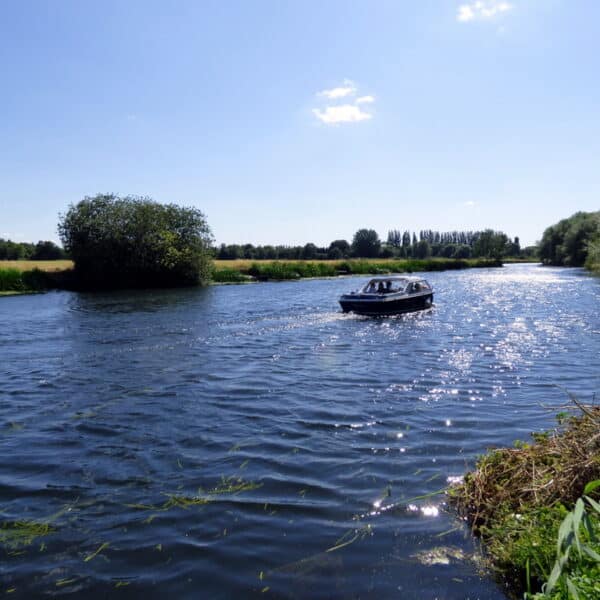 - the River Great Ouse dominates the outbound journey. The footpath follows the river at this point of the walk. The flood plain for the river is wide, thus the best use of the flood plain land is agriculture. Fields sat either side of the walk route. This was a tranquil part of the walk.