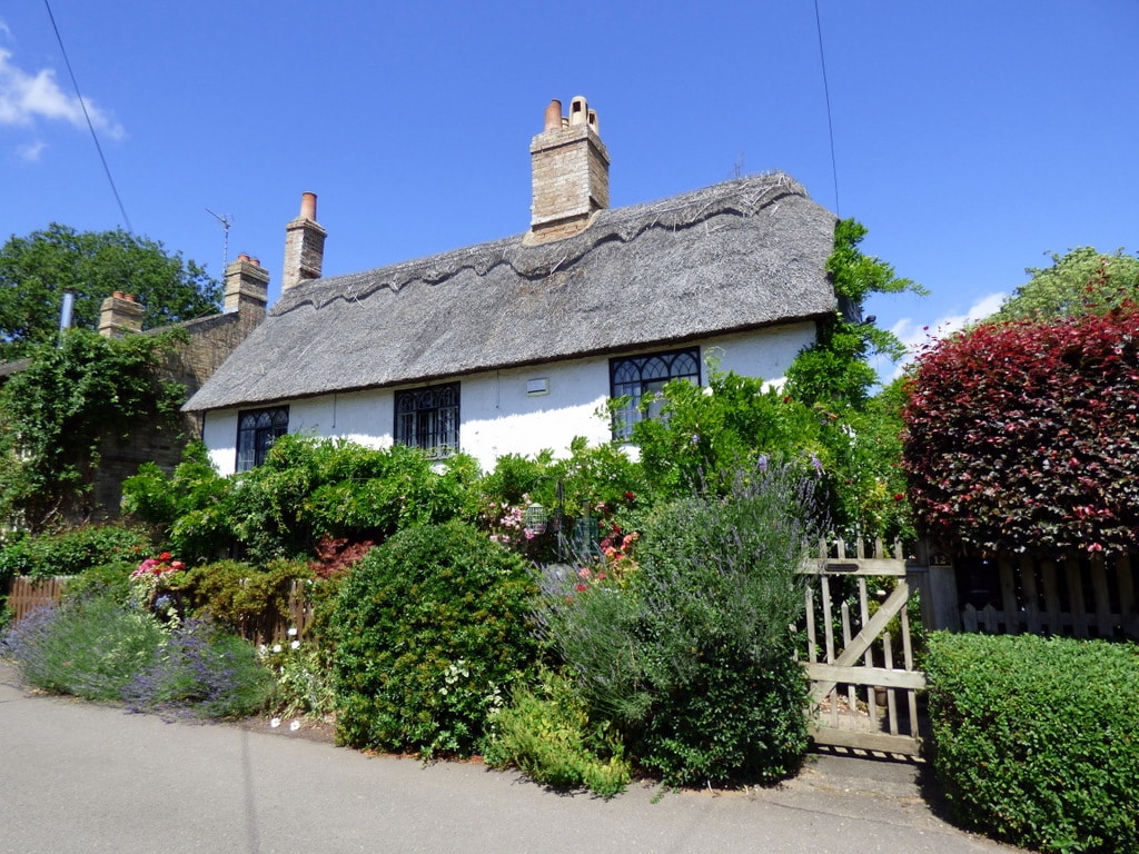 - Hemingford Abbots just happened to have its regular flower festival taking place on the day. The festival takes place every two years, so the next festival will be on 26-27Jun2027. The festival enables ticket-holders to visit numerous private gardens in the village, some of which provide teas & coffees. The church is flowered-up and, this year, we saw the remnants of Morris dancing, complete with a man dressed up as a chicken. The village centre is full of thatched-roof buildings, including one building which looked like it might once have been the village school. The flower festival is popular: a water meadow next to the village becomes a make-shift car park, which looked more than half-full.