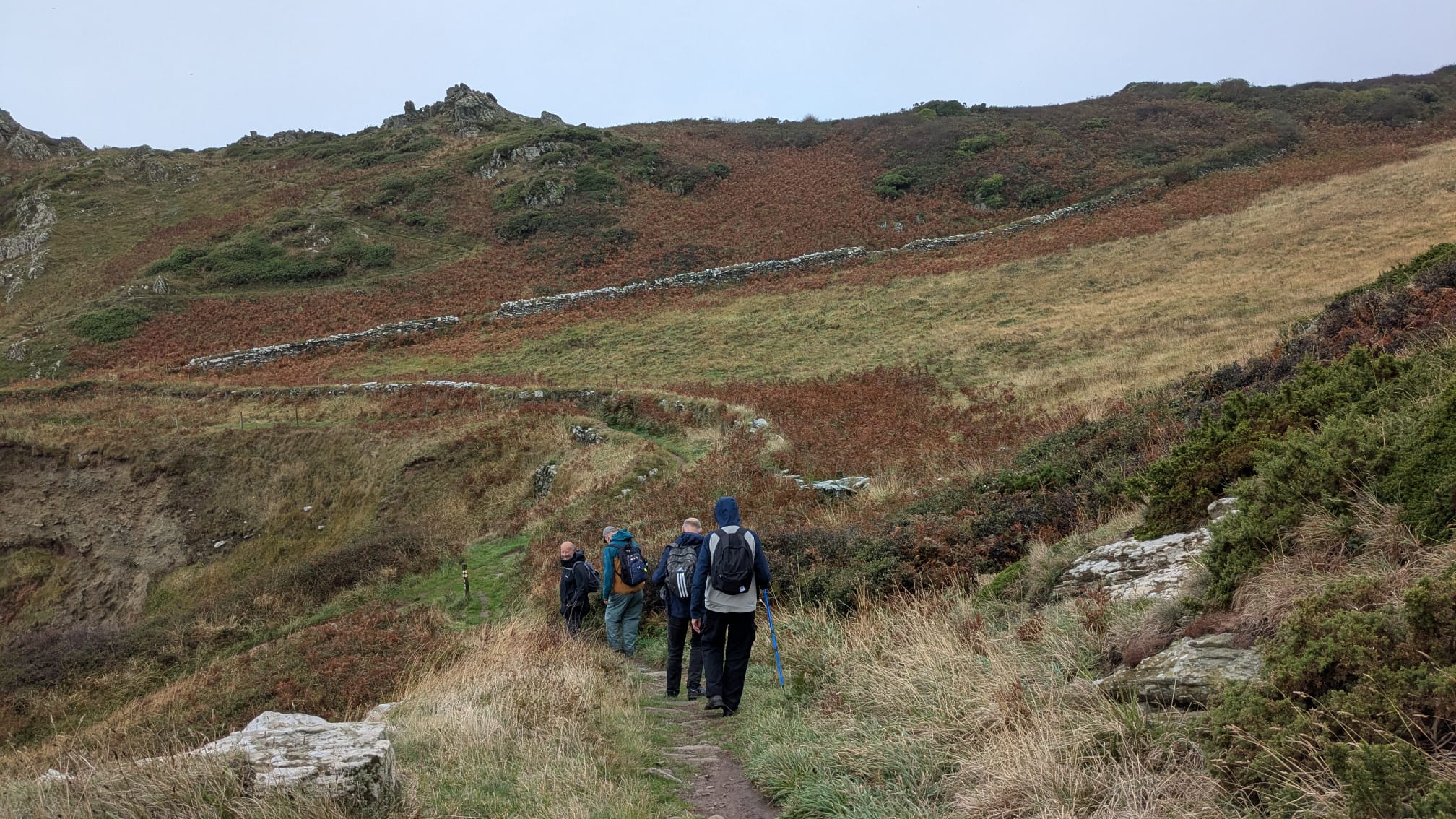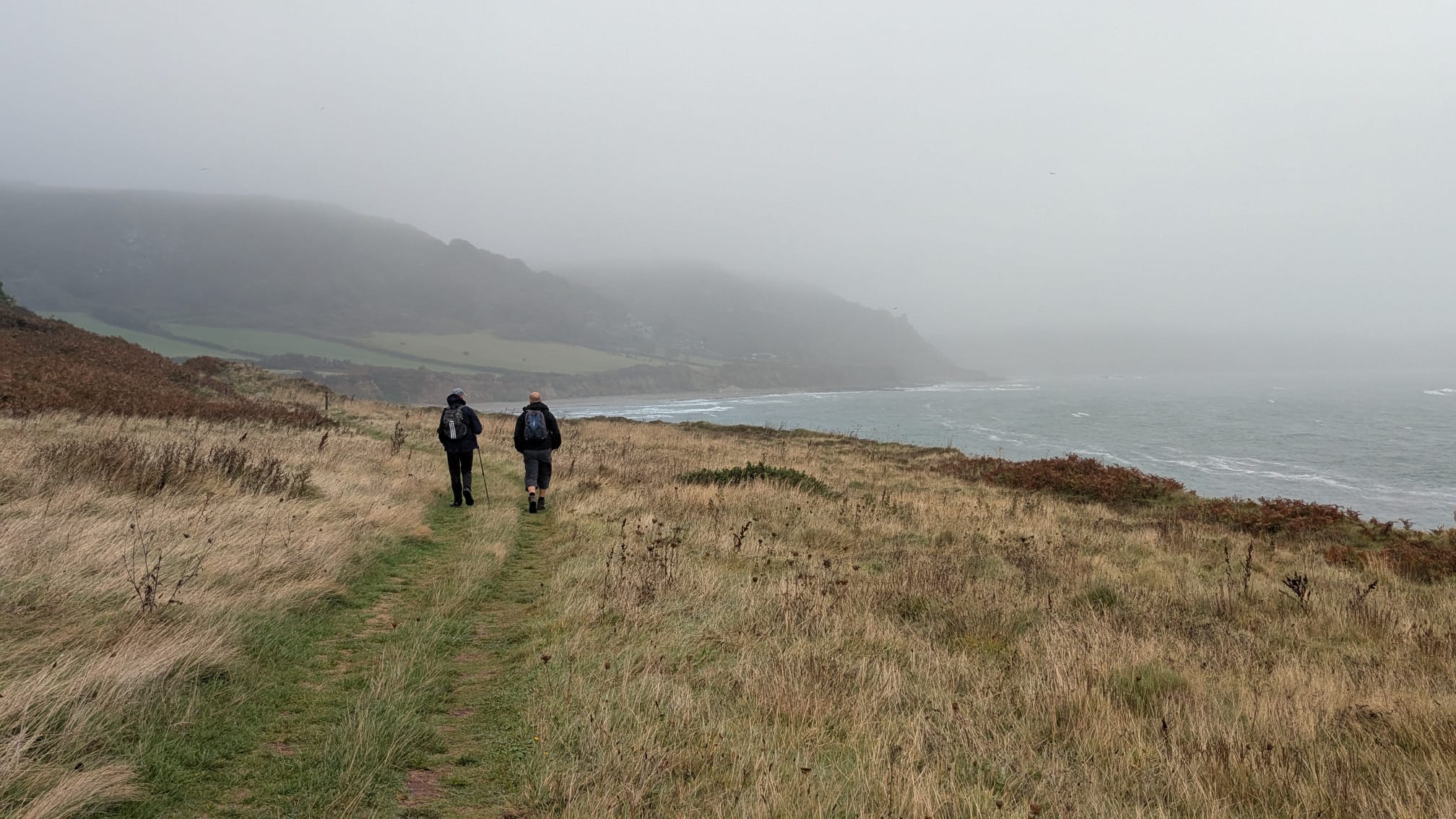 Initially we had the coast path to ourselves but we later passed and chatted to other walkers including two from Australia. At lunchtime the warm and dry shelter next to the coastguard’s lookout provided welcome relief from the wind.