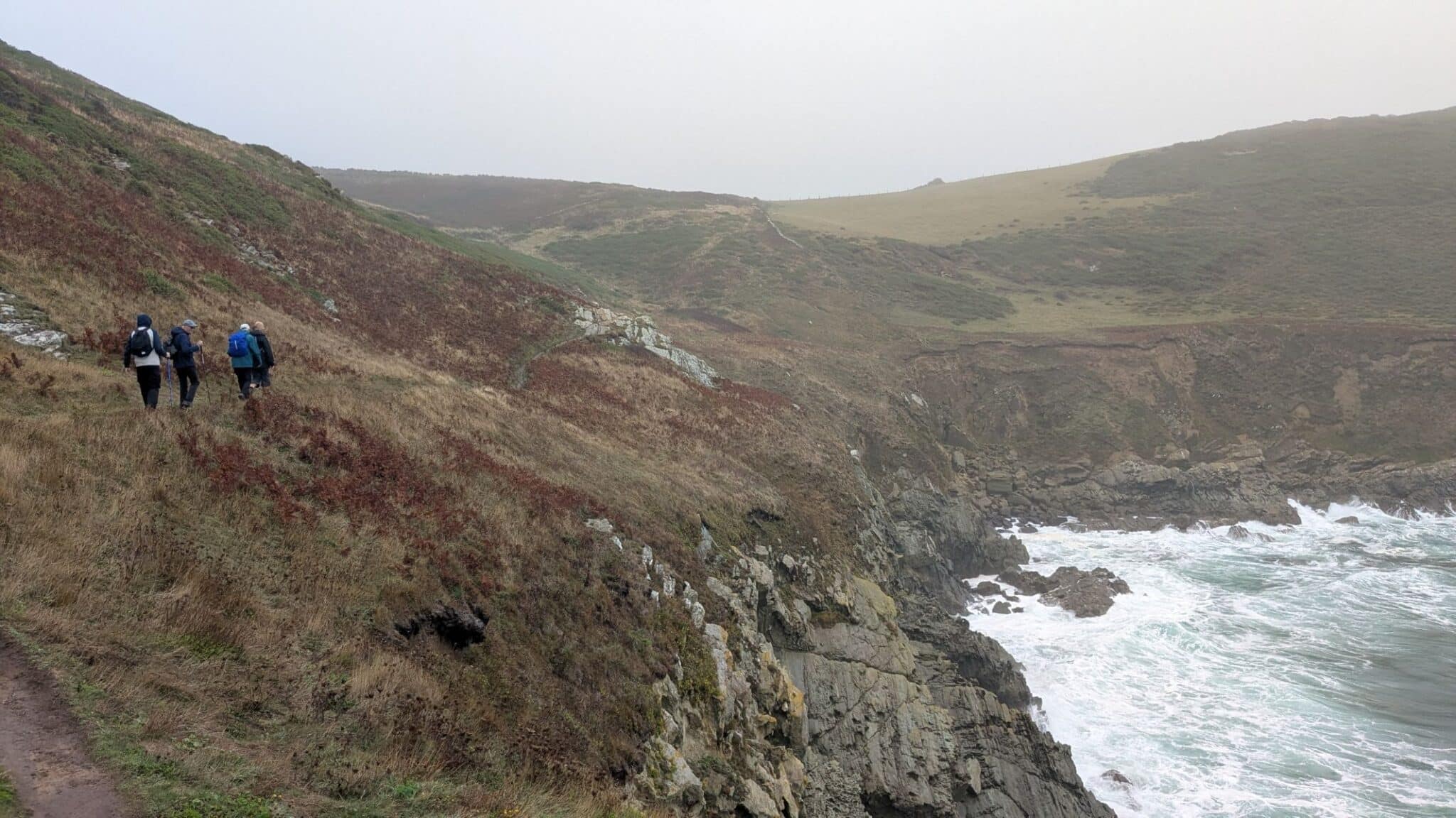 Amazingly the rain and drizzle held off for most of the walk allowing the strong winds, low cloud and crashing waves to show off the rugged coastline at it’s wildest best. We rounded Prawle Point which is the most southerly headland in Devon and only 17 miles further north than Lizard Point, the most southerly tip of England.