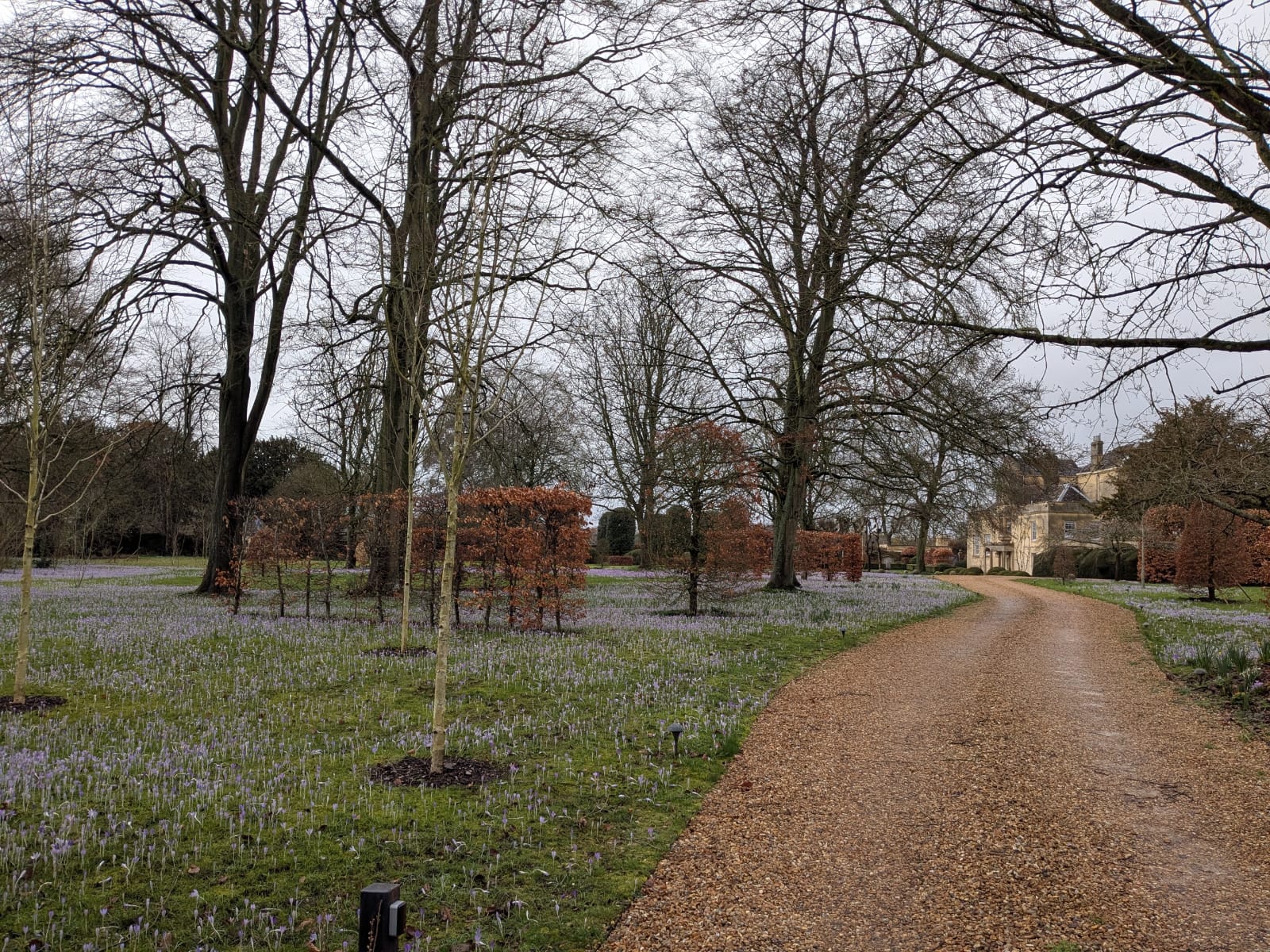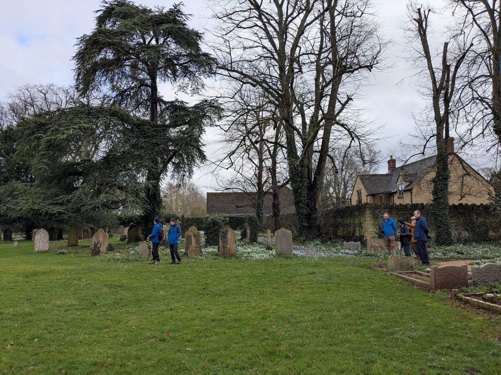 We discovered that Bampton had three vicarage's a Rectory for the visiting Bishop. Andrew explained there were several chapels, each linked by narrow high walled footpaths dividing the large houses. By going to a large gate were were able to see fields of snowdrops & crocuses along with walking in the cemetery edged with them.