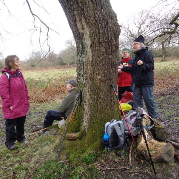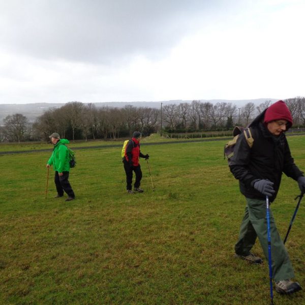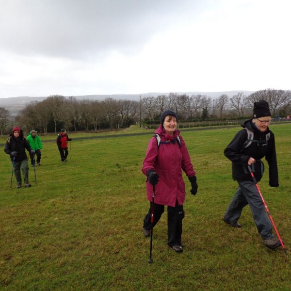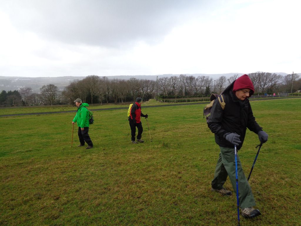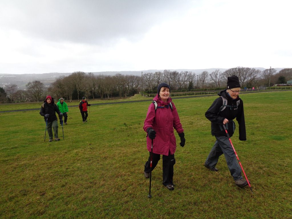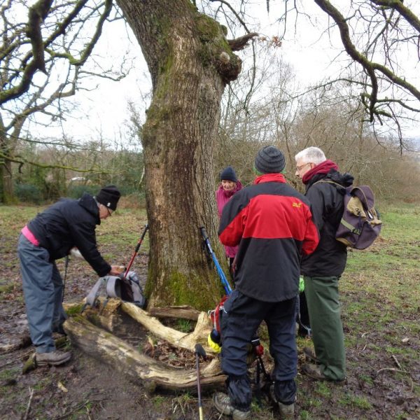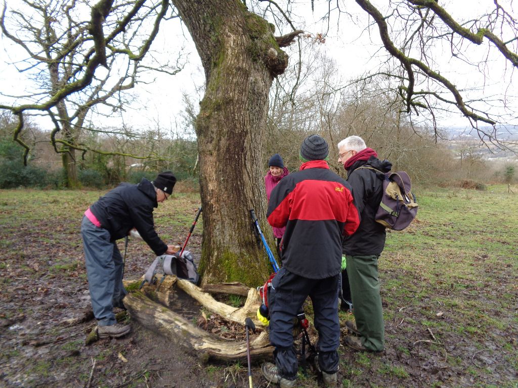 Making our way through some fields and over a few slippery stiles we came to some greenery with trees, where we had our first tea break and where we had great views towards Cross Hands and to nearby Ammanford.