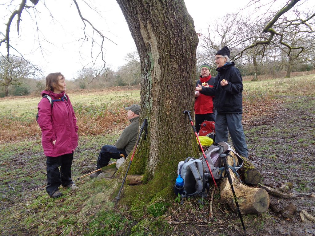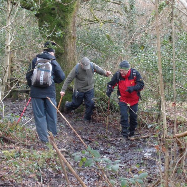 After lunch there was a spell on a quiet country lane and then through another wooded area up to a house where Gail surprised everyone by ringing a bell that was by the garden gate, very loudly.She knew from experience that this warned the owners that walkers were about to cross their property, and they made sure their dogs were inside and under control.