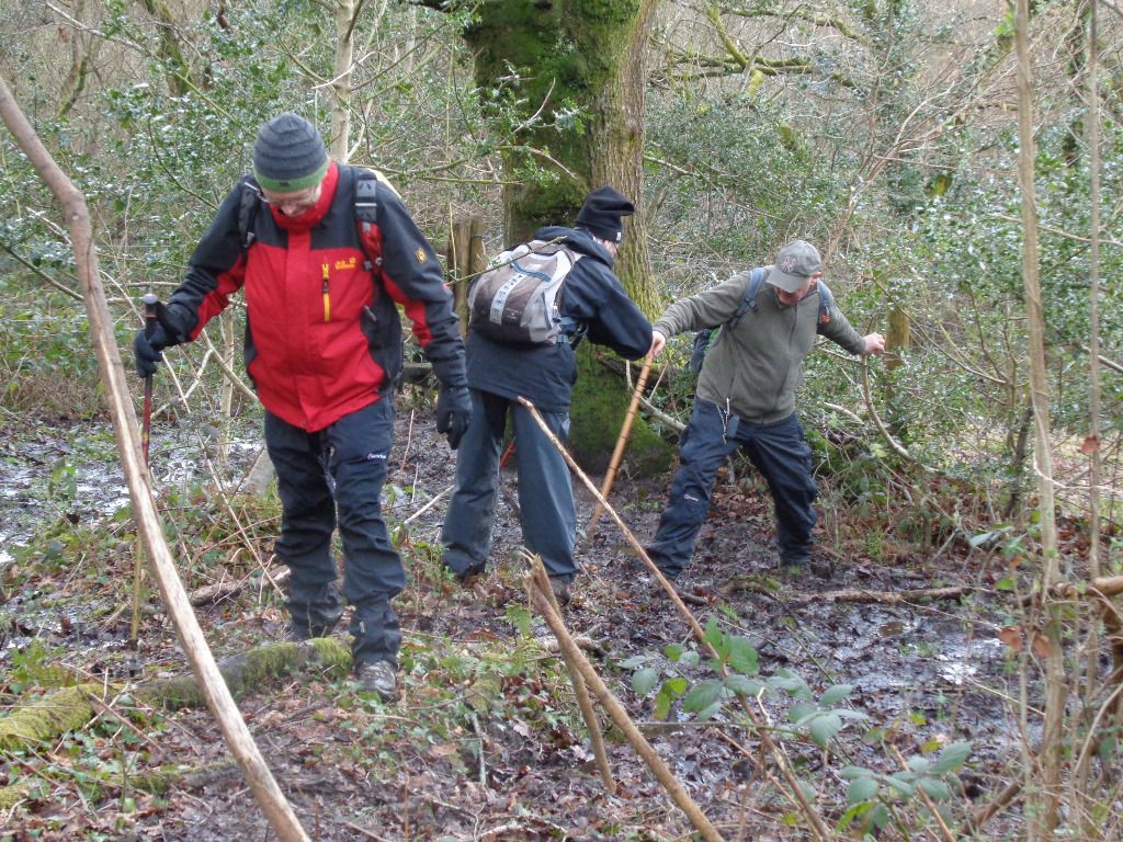 In order to give them a wide berth we found we were on a severely waterlogged and muddy surface, which unbelievably got even worse, so we had to literally wade through some quite 'orrible deep slurry which threatened to (and indeed did) ooze over the top of our boots.Thankfully and luckily no-one fell, in the very slippery conditions and we all breathed a sigh of relief as we emerged from the stinking conditions.