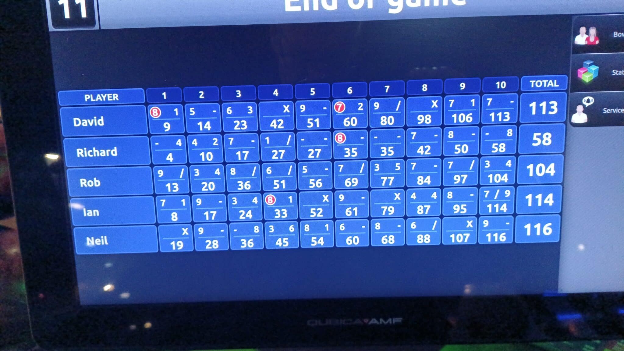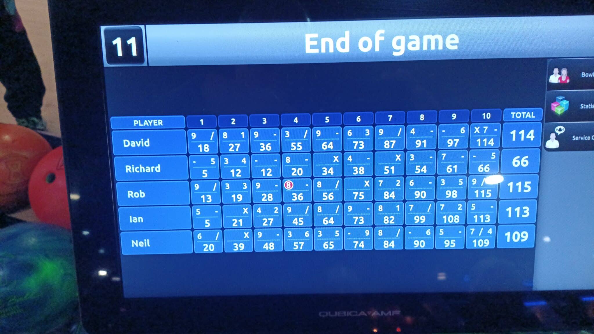 We split the group into two teams of five per lane for three exciting games. As always everyone had a fun time with mixed fortunes but everyone enjoyed the day.