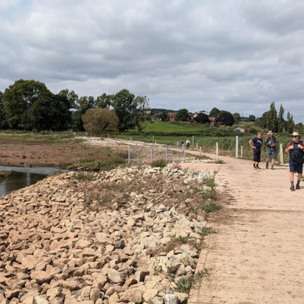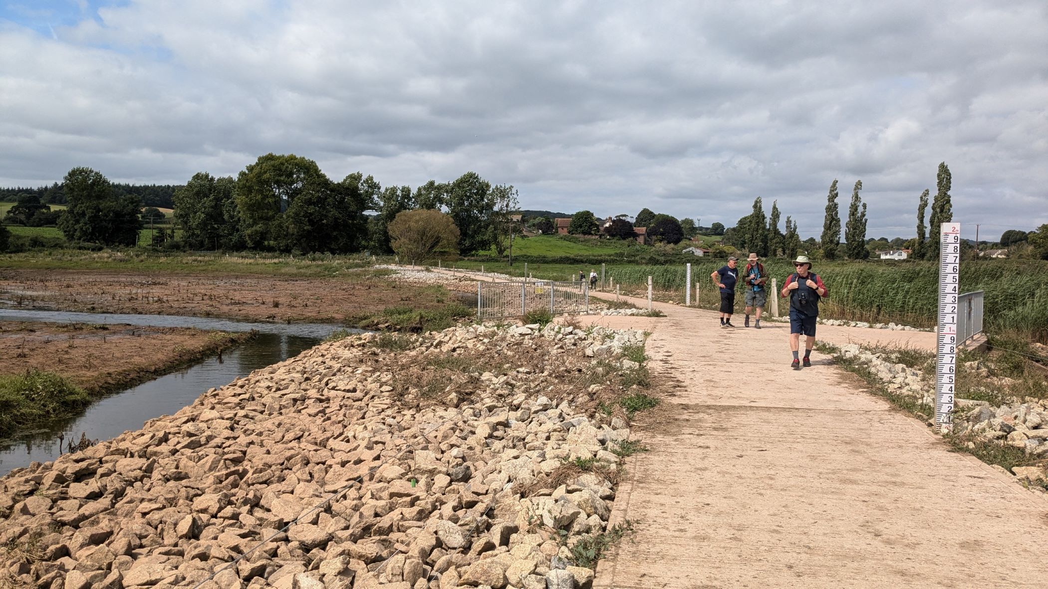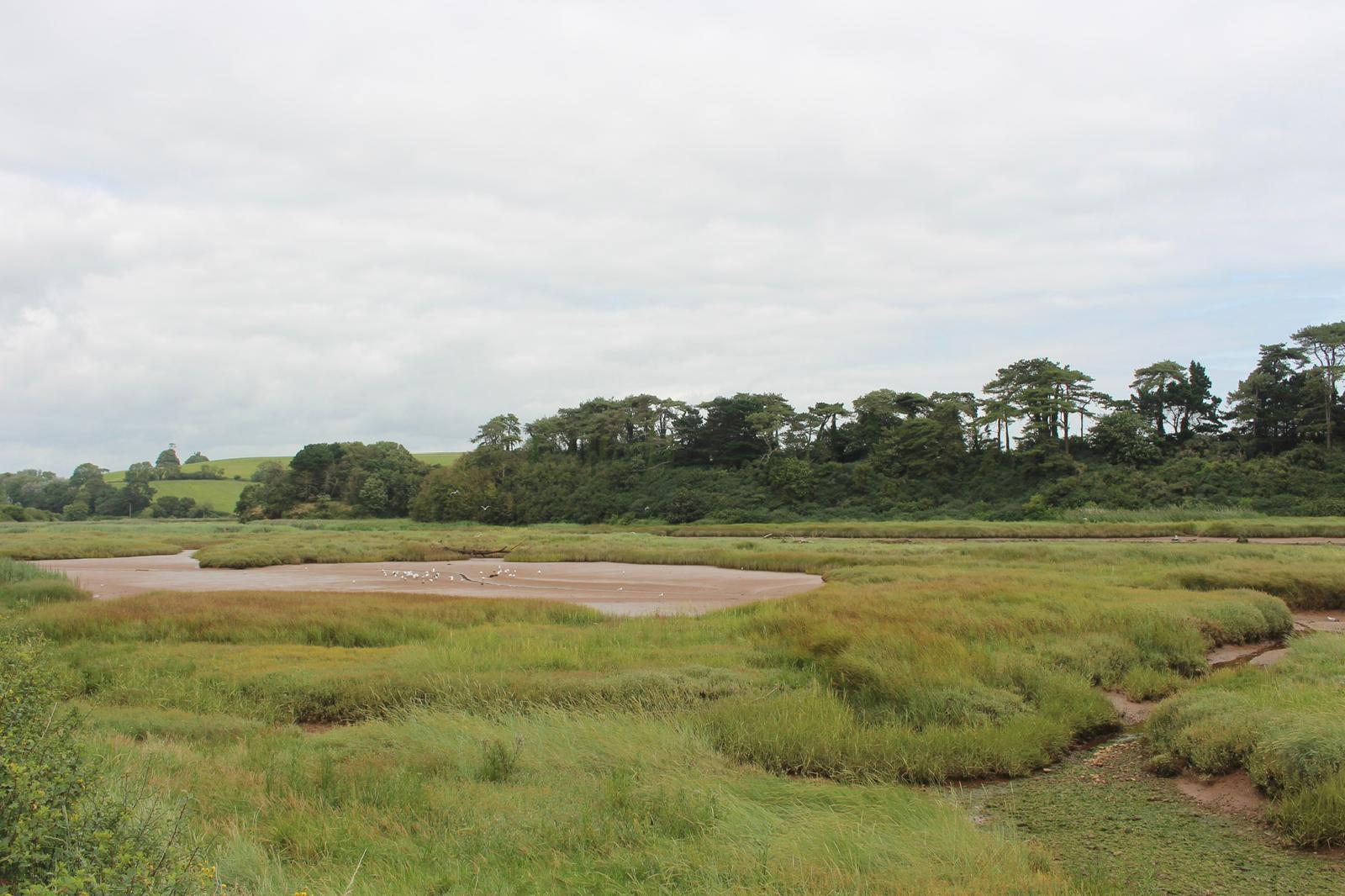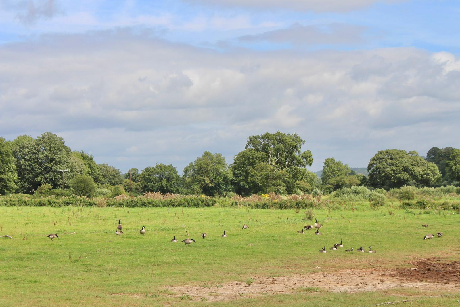 After a short while we crossed over a road, went through a car park and it was from here we saw our first view of the estuary! A newly created footpath led us around the western edge of the marsh which afforded the opportunity to see the wildfowl that were dotted all around. There were Egrets, Canada Geese, wading birds and numerous types of ducks. We continued on this path, crossing the marsh which then started to follow the river down to Otterton where our lunch stop was on the beautiful village green.
