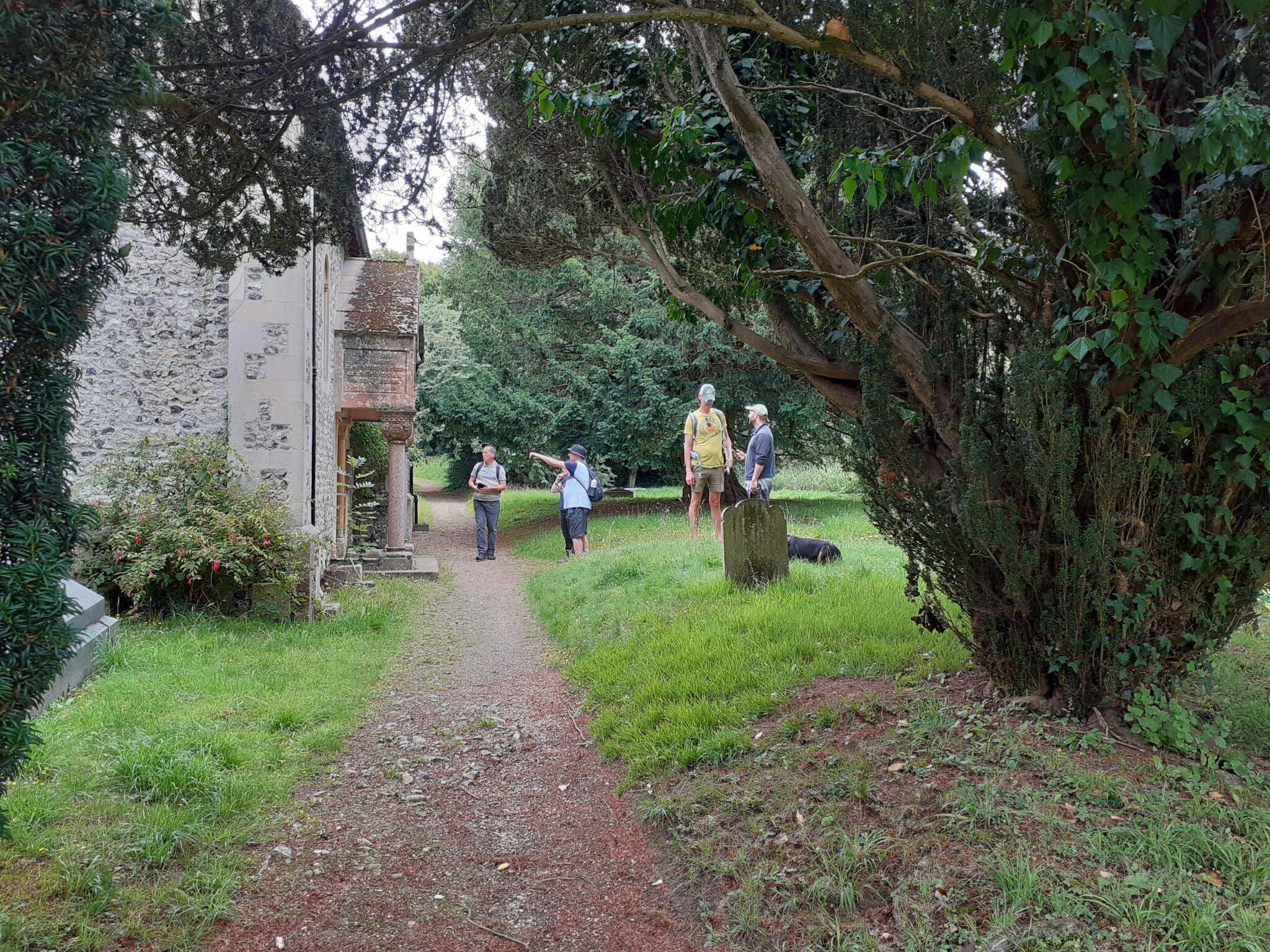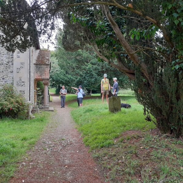 On the 27th of July 2025 a small band of East Kent members went on an enjoyable walk through varied countryside. It was the same weekend as the Annual Outdoor Gathering in Lancaster, so we only had a total of 6. From the starting point in the village of Eastry near Sandwich, we made our way across fields and tracks to Marley and then on to Northbourne church where we stopped for lunch and had a good look at the church. One of our group named Barry, pointed out that some of the stone used in the church external wall was from original small Roman columns which was good to know.