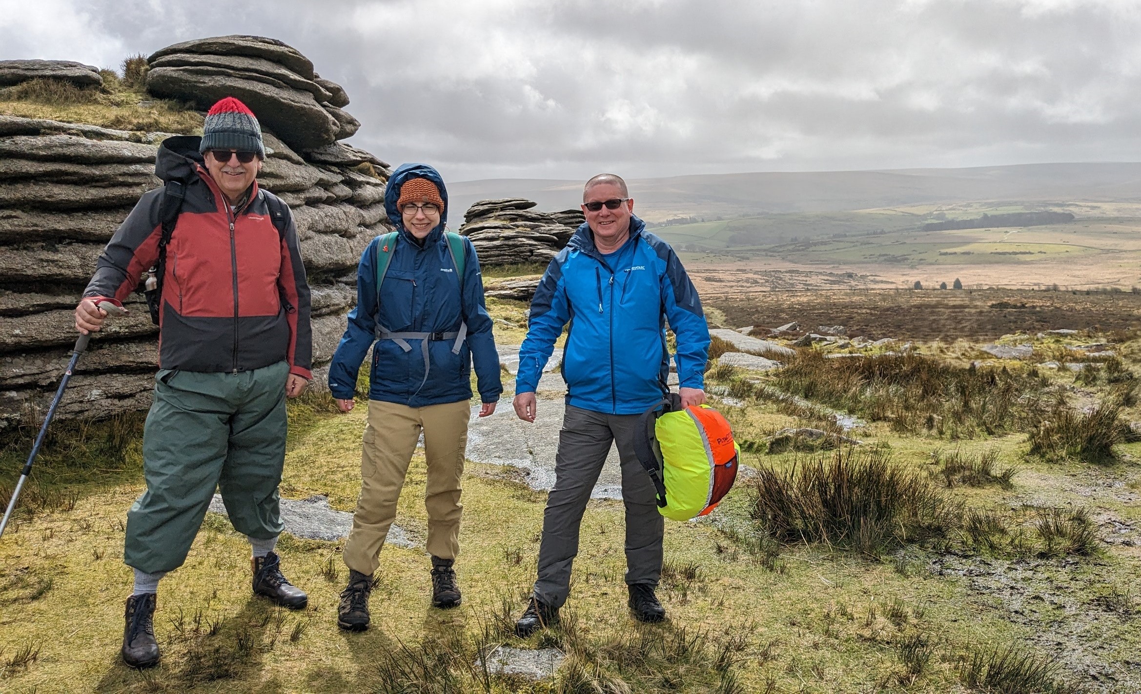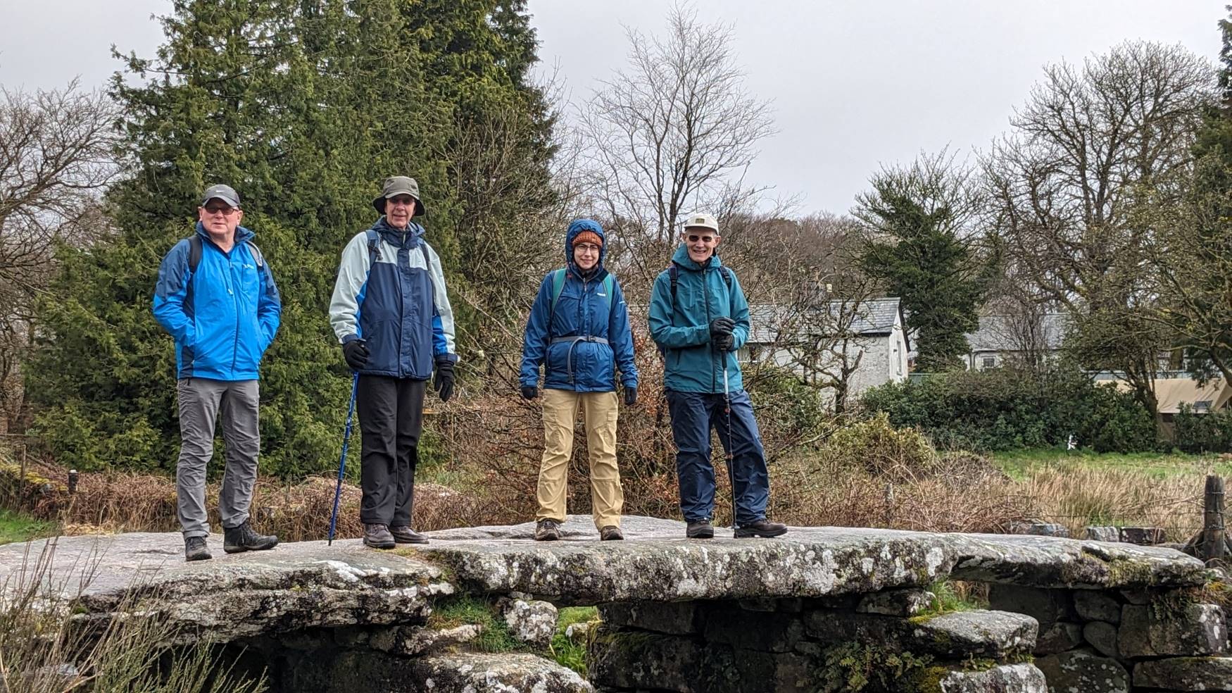 Five hardy walkers met at Postbridge on Dartmoor on a damp windy day courtesy of storm Kathleen.