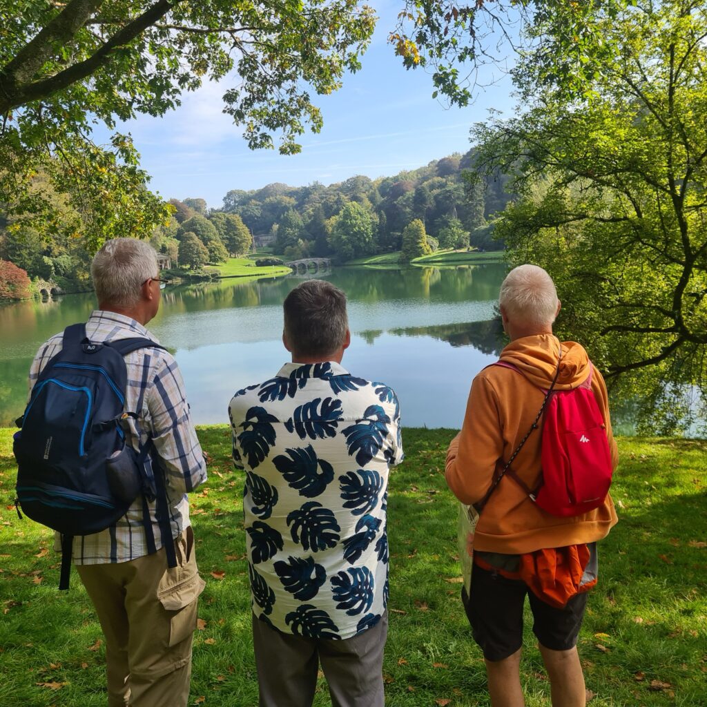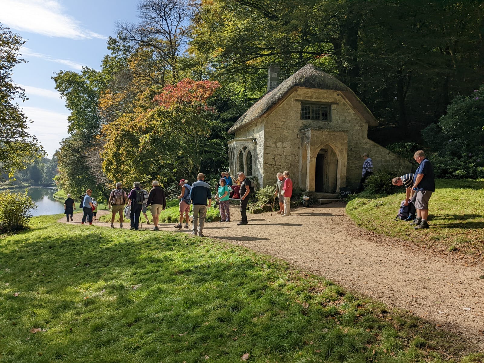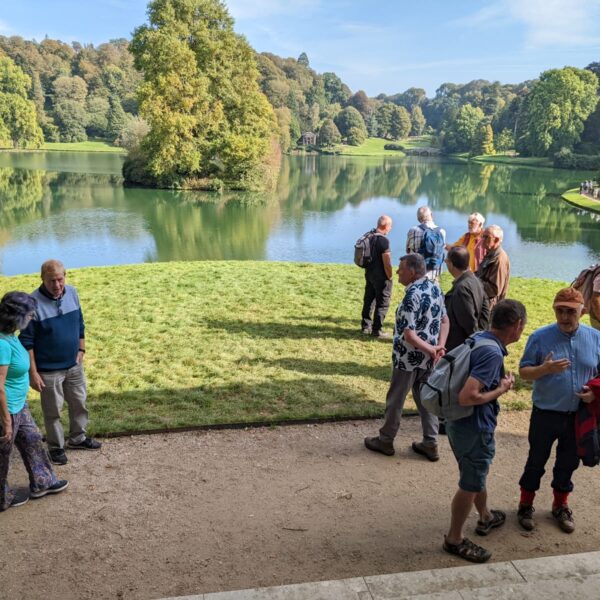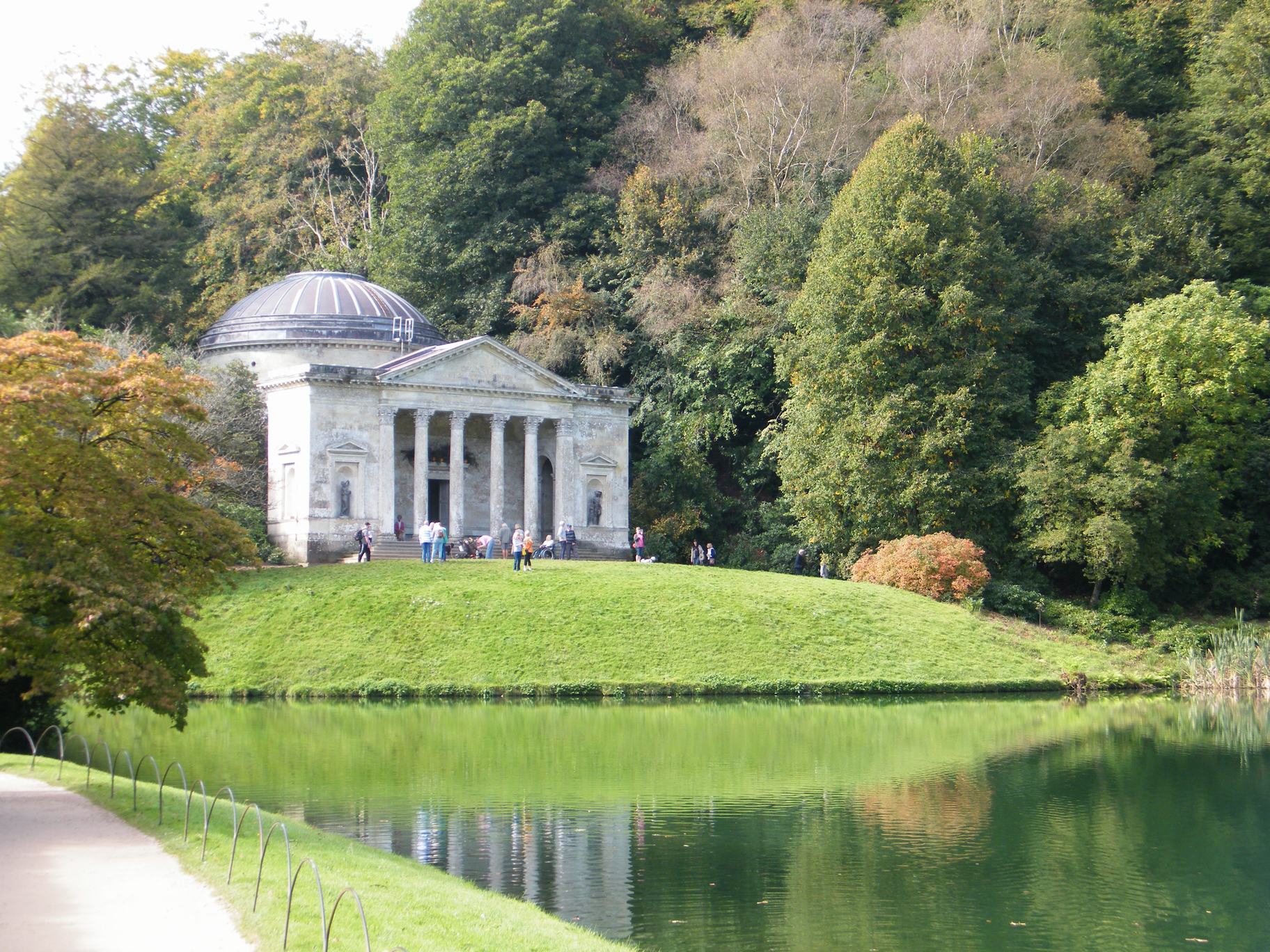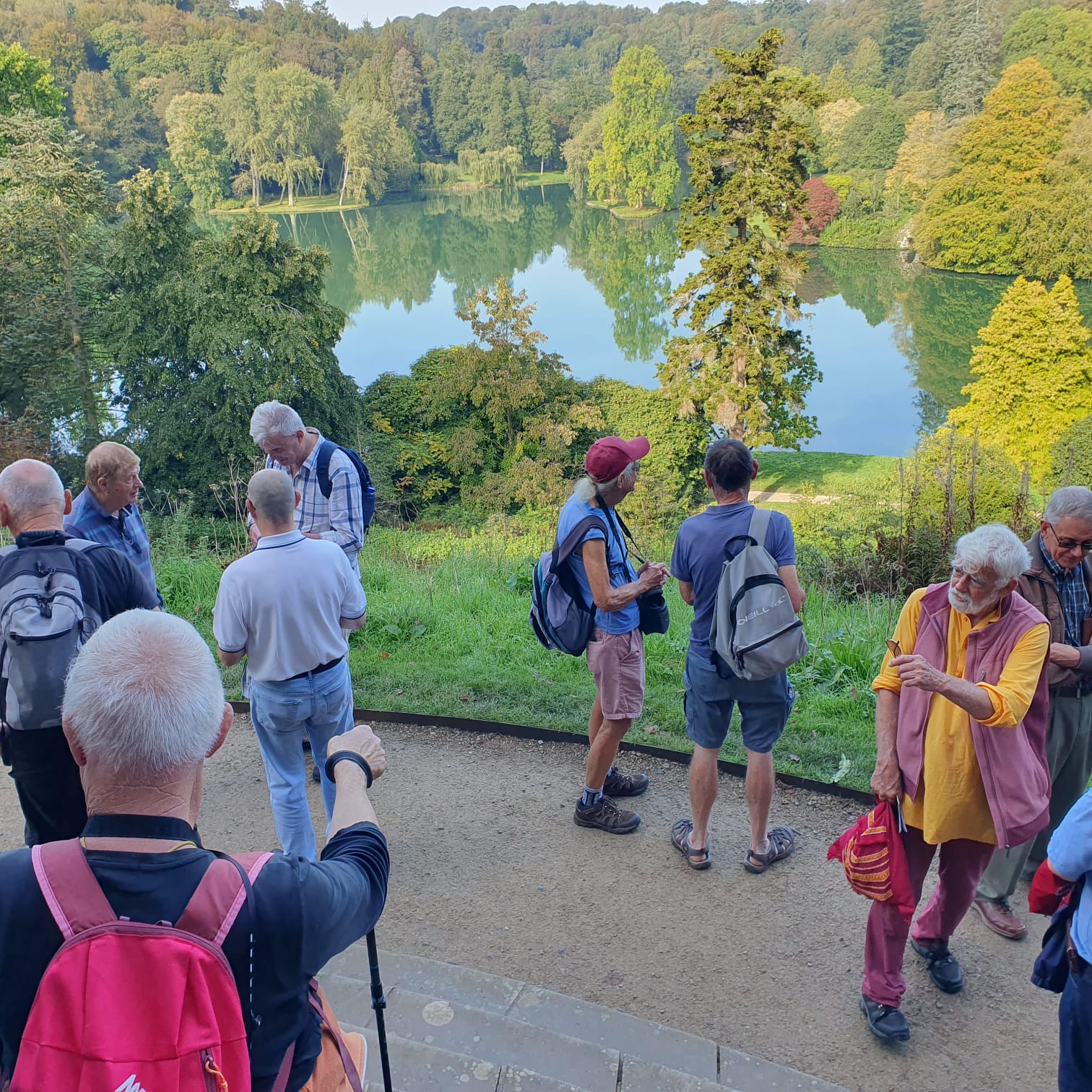It was a lovely sunny morning as we gathered at Stourhead National Trust Gardens in Wiltshire and it just got better as the day went on. The lure of autumn colour made it a popular destination and the car park and entrance areas were busy, even early on a Monday October morning. Some of our group had travelled long distances – Swansea, London and the South Coast. After brief introductions, it transpired that one of our number, Phil, was very familiar with the garden and kindly agreed to act as our guide for the day. This greatly enriched our visit, especially explaining why it was important to follow the route in an anti-clockwise direction.