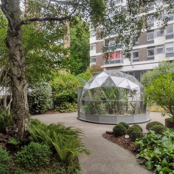 The next garden, Coniston Court, was my favourite. It was designed with curved gravel paths, a range of planting styles, varied planting, and hidden corners, as well as a small greenhouse which I think was a “buckyball” design. We then walked to a small raised planted area called Reflections 2020, about which there was not much to say except that any planting is welcome in an urban area.