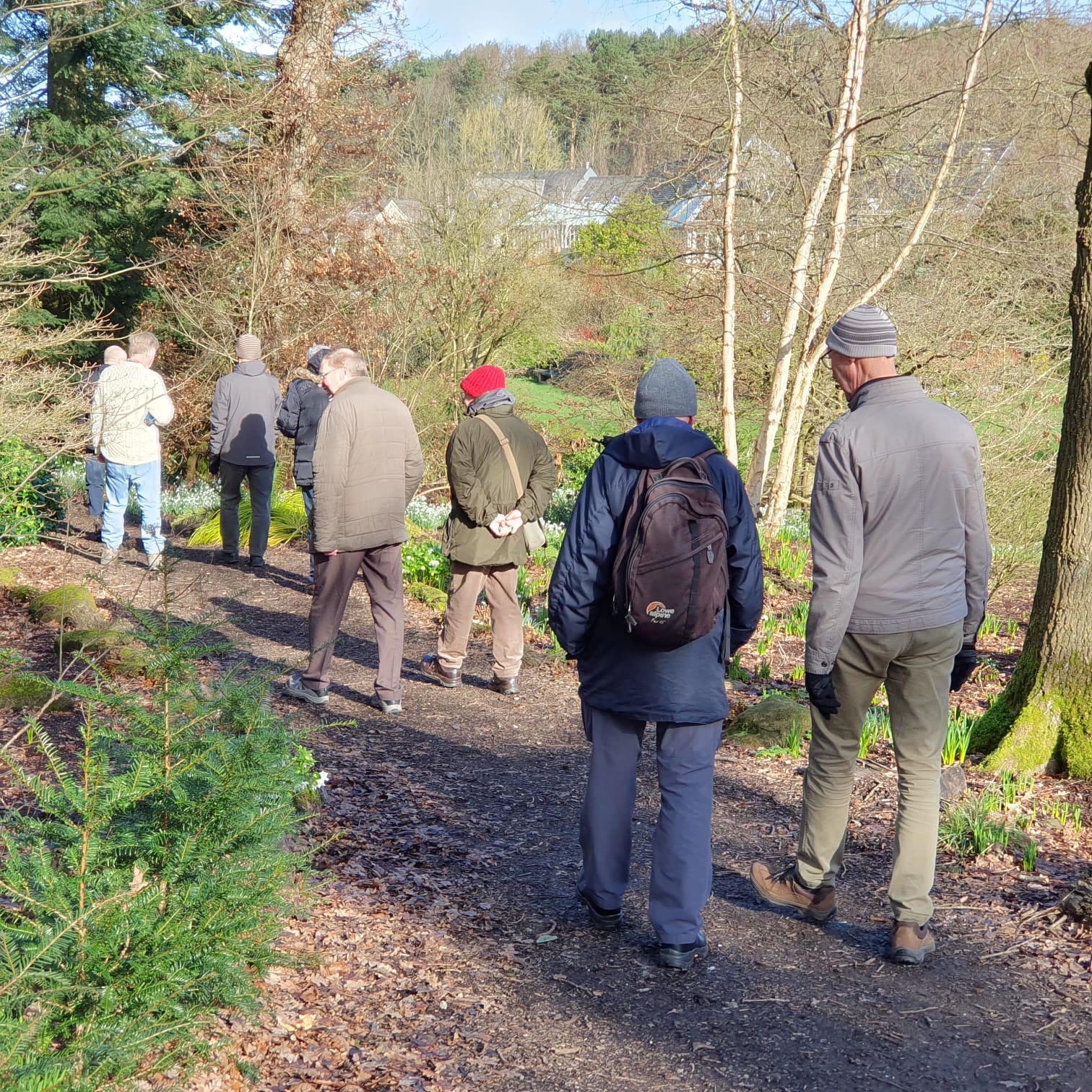 This garden is renowned for many things, not least it’s Winter Garden and snowdrops. It certainly did not disappoint and the sun shone as we gathered for our February visit. We welcomed one brand new member, on his first event who had joined GOC specifically because of the Gardens Group. We hope that he enjoyed what we also hope will be the first of such trips with us. As we leisurely toured the gardens, it soon became apparent that we had several very knowledgeable gardeners in our midst, with interesting discussions on the plants we were seeing, their own gardens and other gardens they had visited or hoped to visit. The conversation flowed easily, sharing knowledge and making connections. The Winter Garden was indeed stunning, with a range of trees, shrubs and herbaceous plants all looking their best in the winter sunshine. The design really worked and was undoubtedly the highlight of the visit for me. But the rest of the garden also had lots to offer – the Alpine House had plenty to see, we looked at Rhubarb forcers and there was plenty of nice walks in the woodland area. Some areas were closed off due to construction work of a new bridge, but it did not detract from our enjoyment. We later made our way to the onsite café for refreshments. As we left, we reflected on what a lovely day we had. Sharing garden visits with fellow plant enthusiasts, where conversations flow naturally due to our common interest is a great way to spend a leisurely few hours. We enjoyed meeting friends old and new, and look forward to many more such visits in the future.. Many thank to those who came. Photos credit – Stephen & Neil.