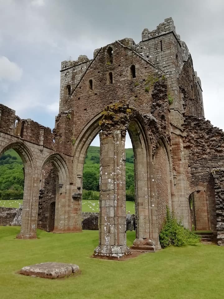 After an initial four mile walk to Capel-y-ffin from Llanthony, along lanes and the lower Offa's Dyke Path on a low level, slightly undulating route, in intermittent drizzle, we climbed up to the Ffawyddog Ridge. Thankfully, the weather cleared as forecast and gradually improved, and we were rewarded with a truly fabulous mountain walk across the ridge, with sweeping views of Sugar Loaf, Skirrid, and beyond, down to the Bristol Channel. The route eventually dropped from the ridge on a steep and pretty path that gave great views of the valley and the priory, and ended at the cafe/pub in the priory grounds.