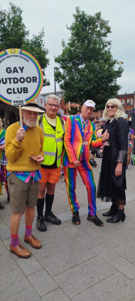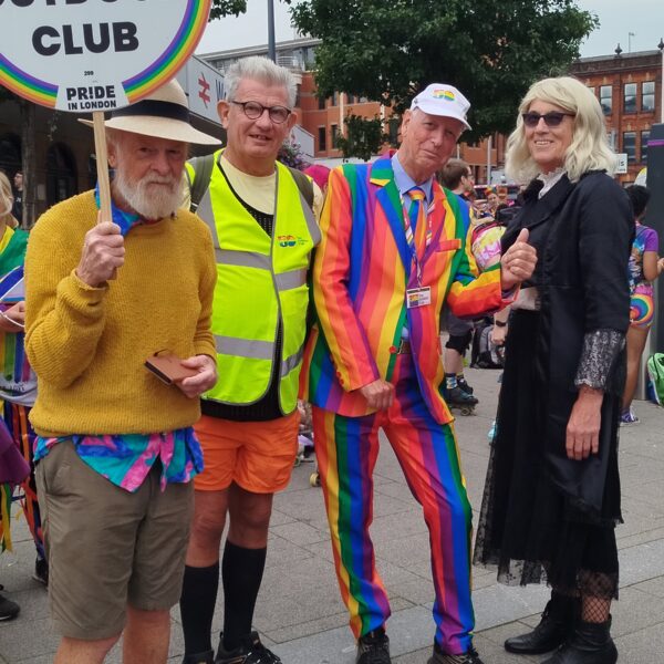 A small group of our members braved the rather grey skies and a chill breeze to walk on the Pride Parade en route to Kings Meadow where Reading Pride took place. Heading our Group was Jim Cornwell, GOC Chair, colourfully dressed in his now well known rainbow suit which certainly drew approving smiles from other participants in the Parade and also the general public.