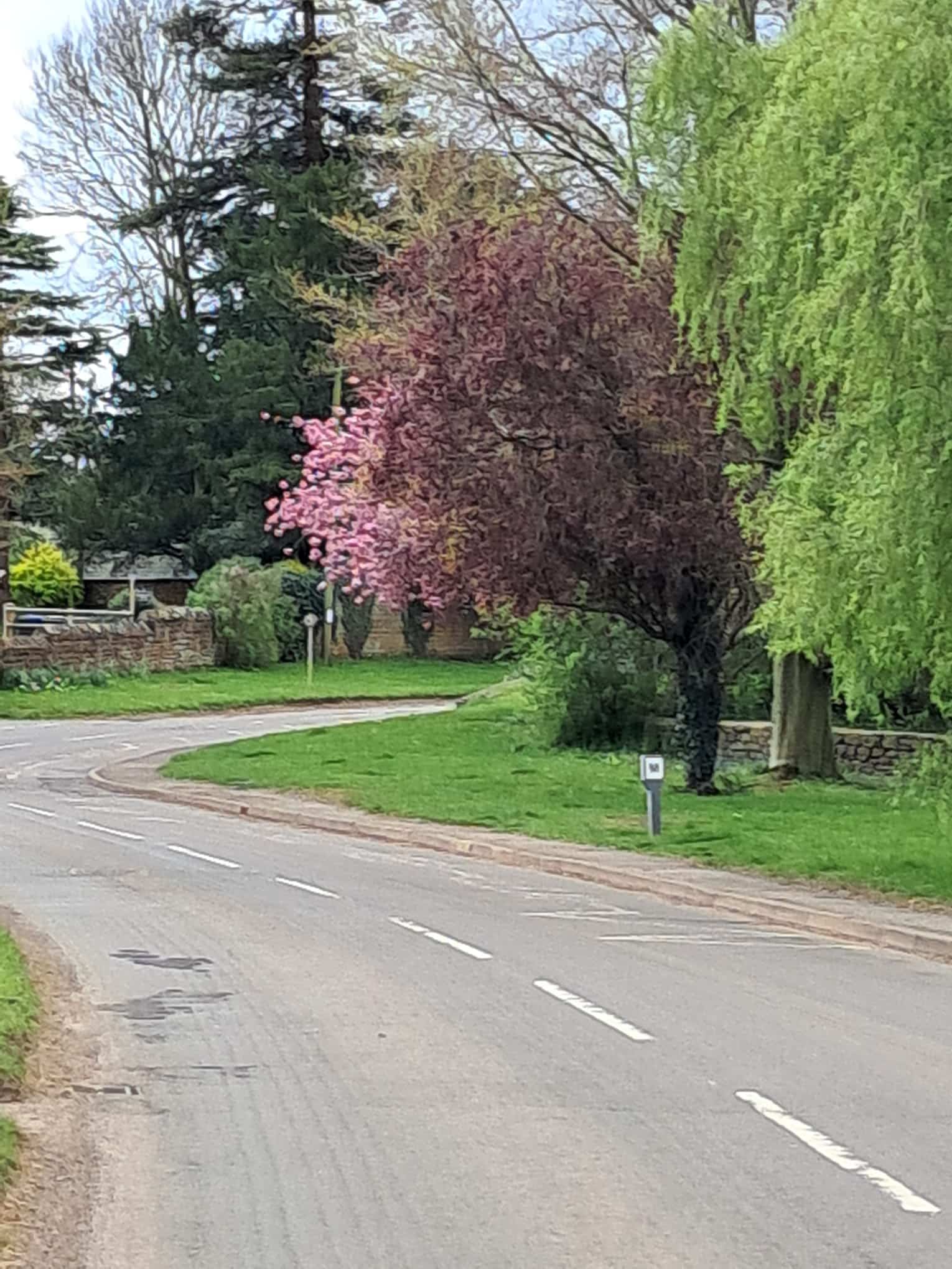 After admiring the distant views from the top of the Edgehill escarpment, known locally as Old Lodge, we descended the hill to the village of Middle Tysoe, where we stopped for our coffee break under a beautiful cherry tree in full blossom, adjacent to the village church.