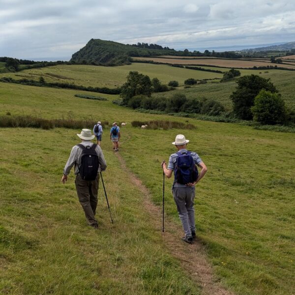 On the return leg some of us rested below the neolithic hill fort of High Peak while others made the short but very steep climb up to the superb viewpoint.