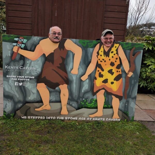 From Andrew Sachs who starred as Manuel in Fawlty Towers  to Peter Cook to Oscar Wilde all featured on our trip through time. Around half way on our tour the heavens opened as we arrived at Kents Cavern. Fortunately, the famous caves have an excellent cafe where we sheltered from the elements with a stop for lunch.