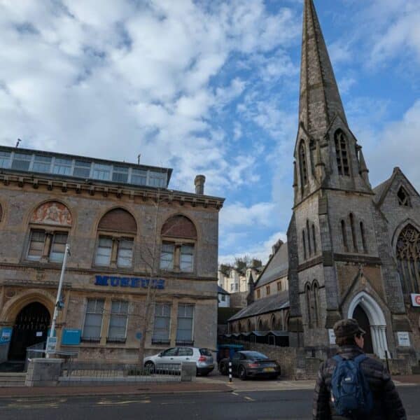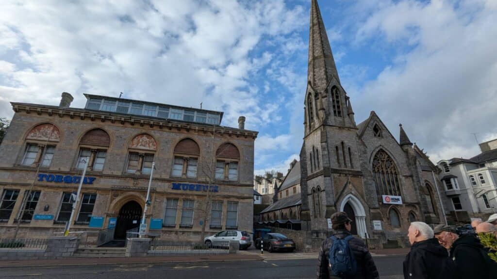 After our break, skies brightened and we continued onward to see another 11 plaque sites as we snaked down towards the town and our final destination, Torquay museum.