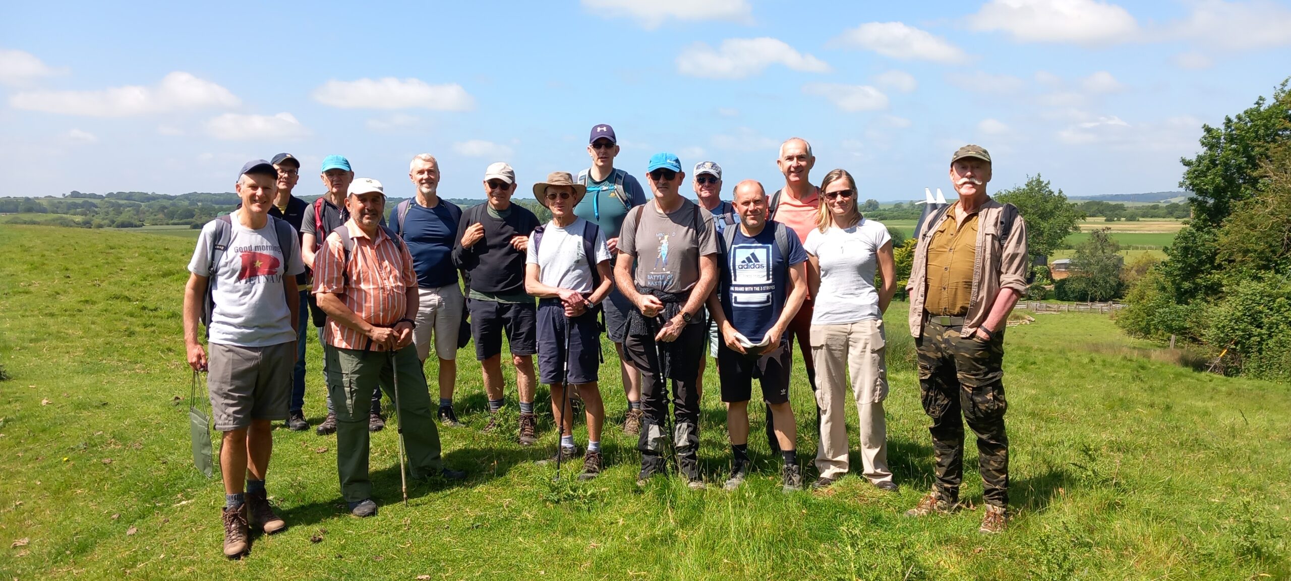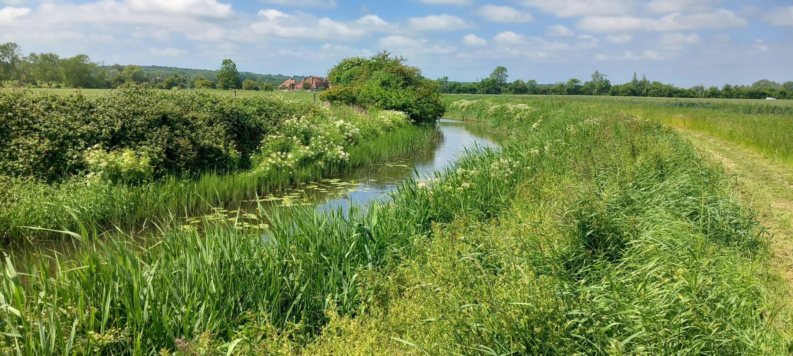 Finally, the first proper day of summer ! An excellent turn-out of 15 for this month's walk starting from the picturesque village of Appledore, near the Kent/Sussex border on the northern edge of the Romney Marsh. The walk took us over pastureland and along flooded ditches that run into the nearby canal. Wide views up to the Isle of Oxney and, once there, views to the North Downs in one direction, and towards the coast at Dungeness in the other.