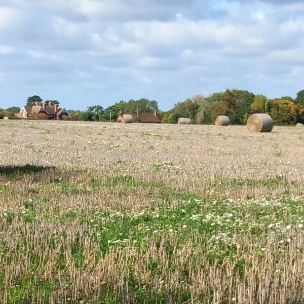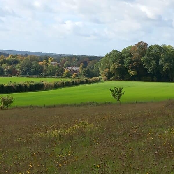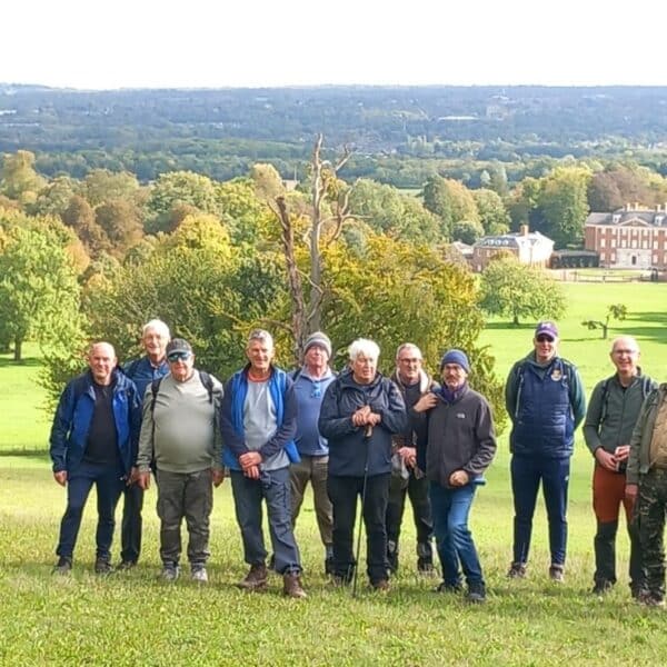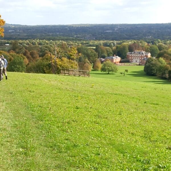 A picnic lunch in the churchyard at Knockholt, before our descent back towards Chevening with good views of the impressive Chevening House.