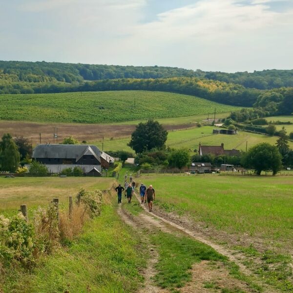 Stunning views on today's walk from Cobham, taking twelve of us through orchards, vineyards, into the North Downs, Luddesdown, and on to Darnley Mausoleum, where we enjoyed an impromptu visit to view the inside, before returning to Cobham. An excellent day with amazing warm winds blowing throughout.